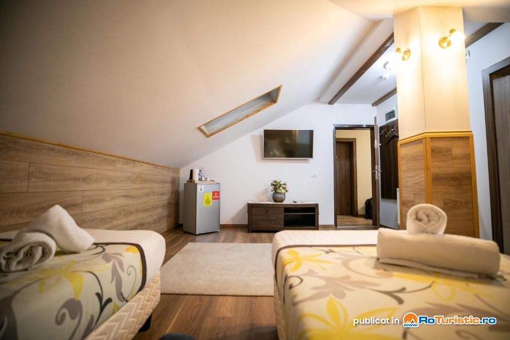 Când ne vor trece pragul, oaspeții noștri vor descoperi atmosfera plăcută, elegantă și rafinamentul spațiilor de cazare, profesionalismul unor servicii ireproșabile orientate către satisfacerea celor mai înalte cerințe ale turistului modern, toate într-o locație aparte, expresie a confortului absolut.