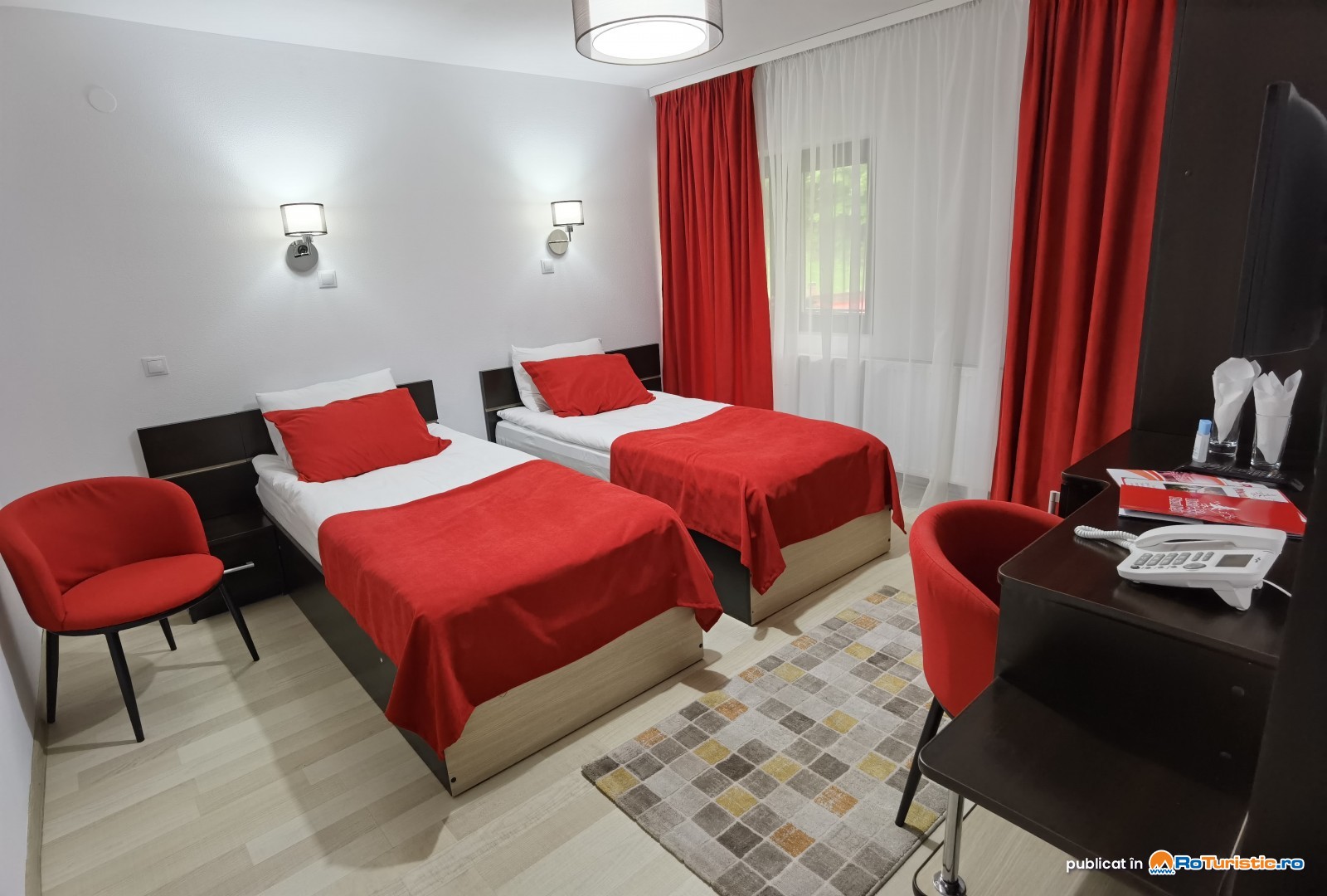 Camerele duble au o suprafață de 20 mp și sunt dotate fie cu un pat queen-size, fie cu două paturi individuale. Așternuturile sunt din bumbac de calitate superioară, iar băile includ cabină de duș, suport pentru prosoape și uscător de păr.