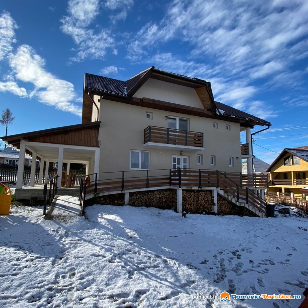 Pensiunea este compusă din 7 camere duble cu băi proprii, living mare cu o canapea extensibilă, bucătărie complet utilată, terasă acoperită cu ieșire din bucătărie și living cu mese și scaune, balcon la fiecare cameră, wifi, foișor cu grătar și cuptor, loc pentru ceaun, loc de joacă pentru copiii, coș de baschet, piscină exterioară, parcare în curte.