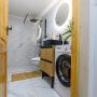Unul dintre dormitoare dispune de chicinetă open space, baie cu duș și mașină de spălat. Al doilea dormitor are baie privată cu cadă. Ambele dormitoare oferă vedere spre curtea interioară.
