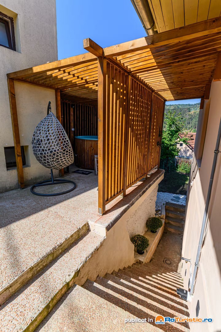 Locația dispune de curte cu parcare privată, porți de siguranță, terasă, cadă cu hidromasaj, zonă de grătar, hamac, pomifructiferi (în sezon), fiind ideală pentru familii, cupluri sau persoane aflate în Brașov în interes de business.