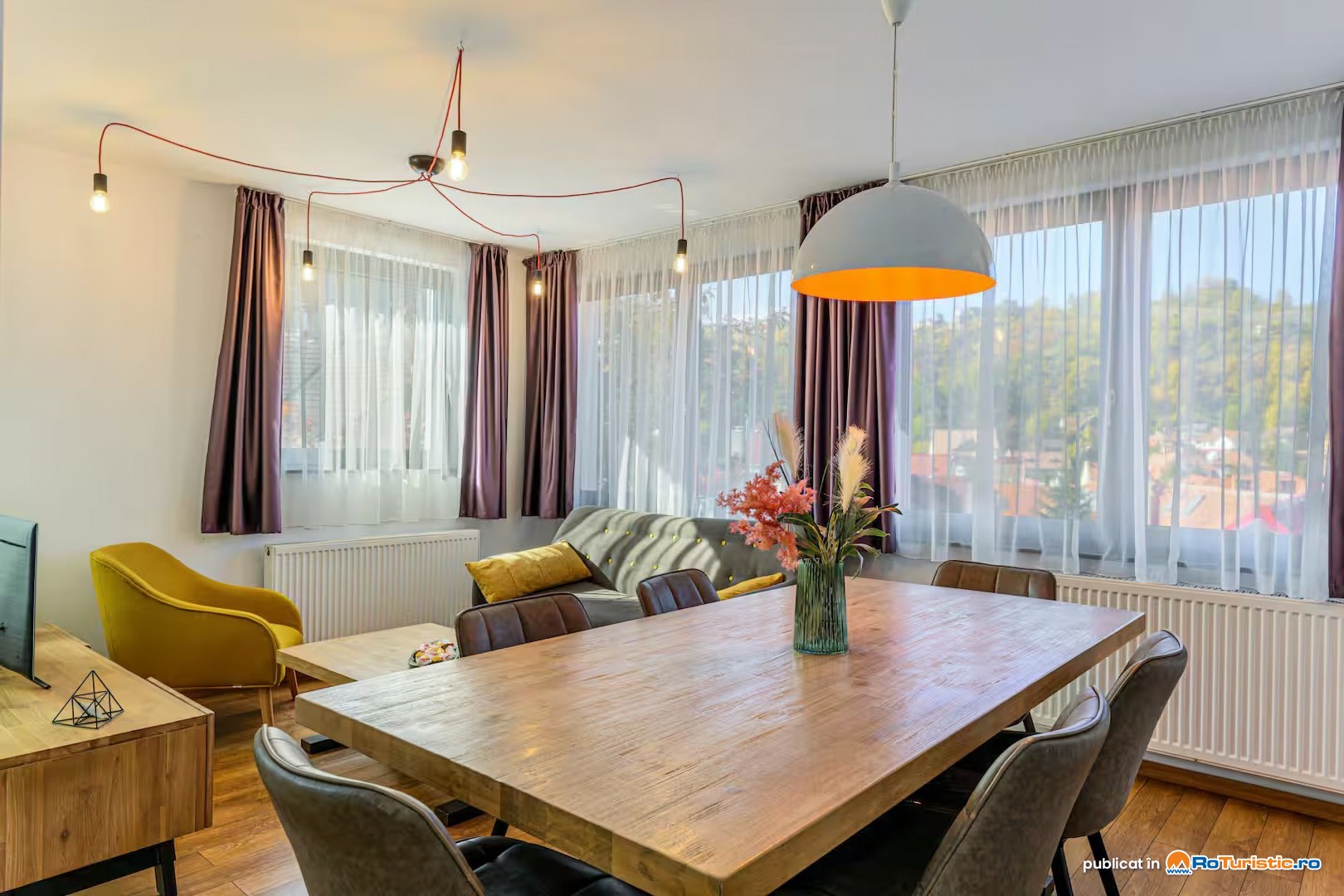 Apartamentul este situat într-o vilă ce dispune de curte, terasă și zonă de picnic și are o capacitate maximă de 7 persoane, inclusiv copii, fiind ideal pentru familii, cupluri sau persoane aflate în Brașov în interes de business.