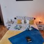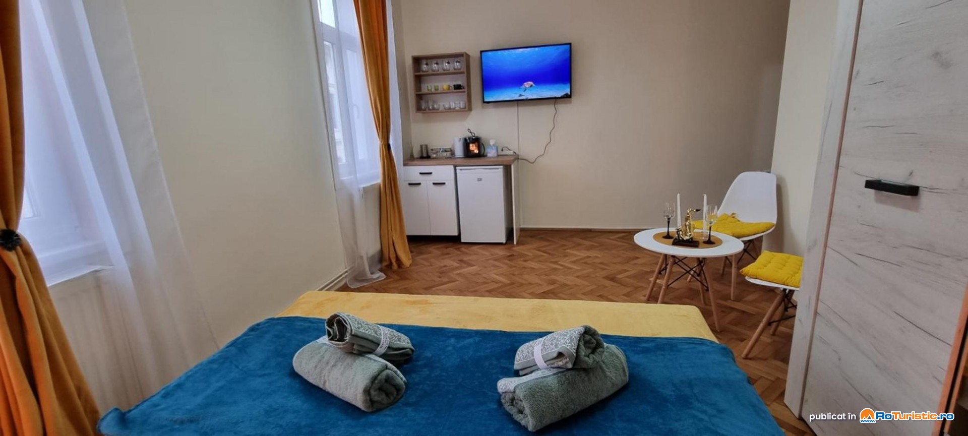 Oferim 2 camere duble matrimoniale și un apartament cu 2 dormitoare. Toate unitățile de cazare sunt dotate cu TV cu ecran plat și canale prin cablu, internet wi-fi, încălzire centrală, dulap pentru haine, frigider și baie privată.