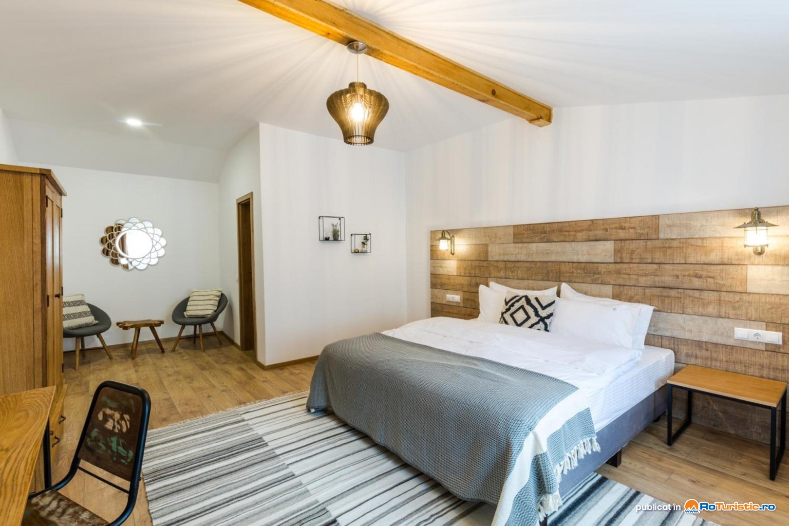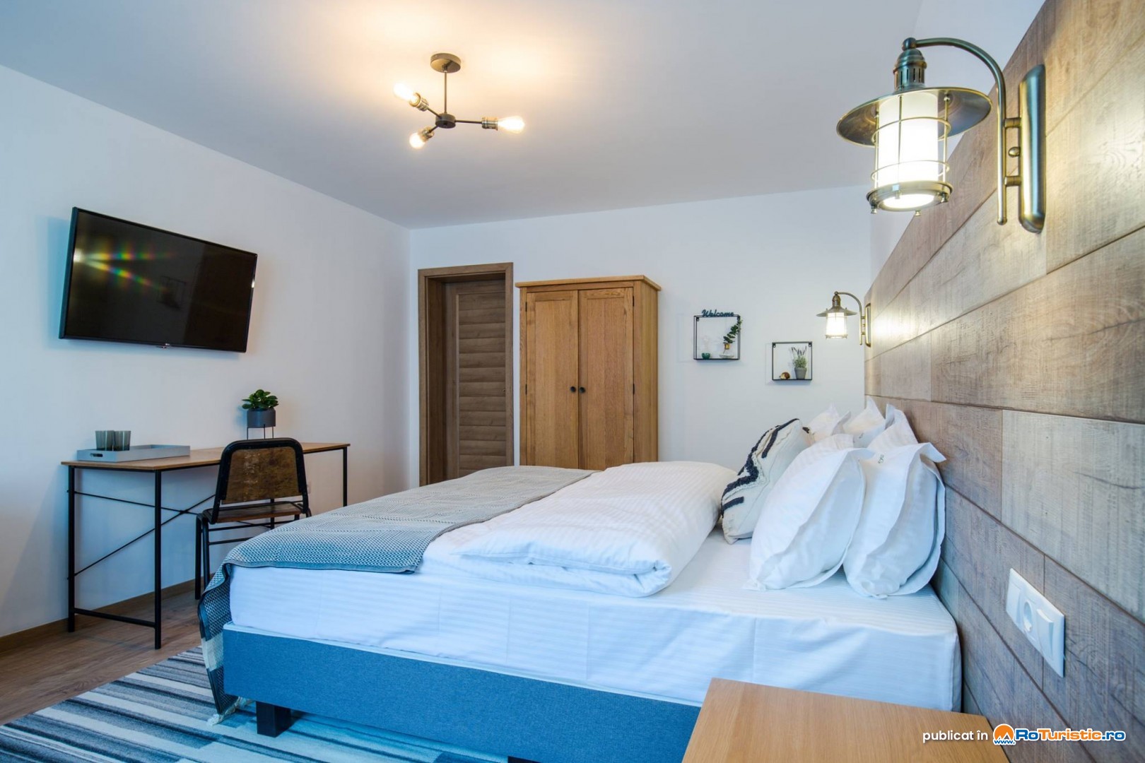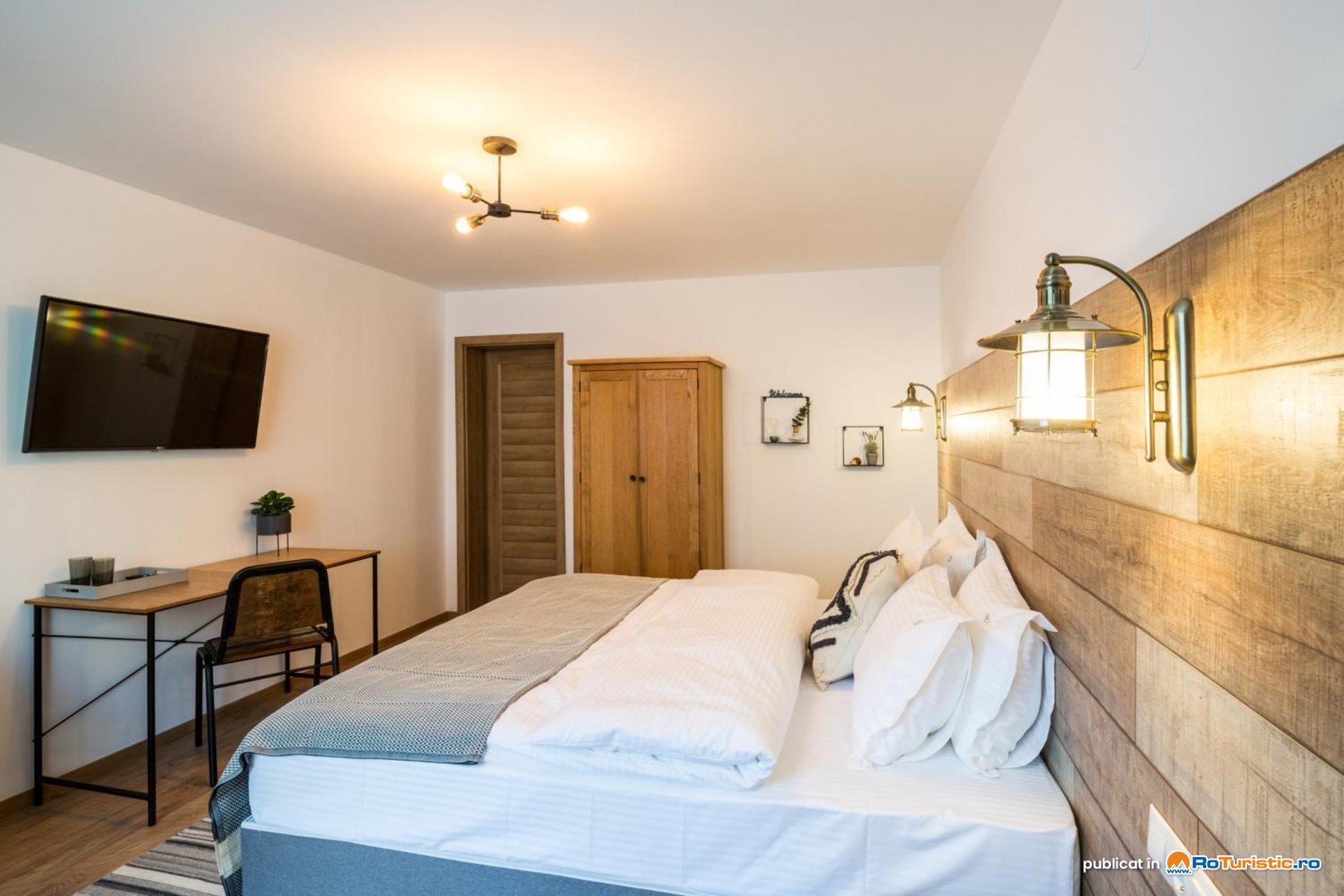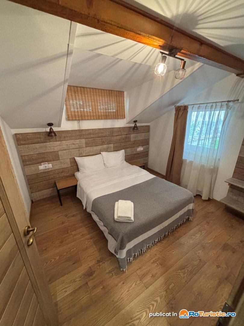 Vă punem la dispoziție camere duble economy, standard și deluxe, potrivite pentru cupluri și familii. Camerele sunt dotate cu baie privată cu duș, Smart TV, WiFi, birou de lucru, parchet / gresie, dulap pentru haine, uscător de păr și articole de toaletă.