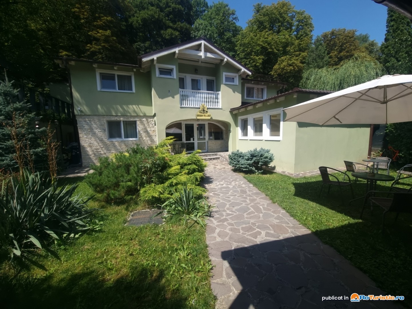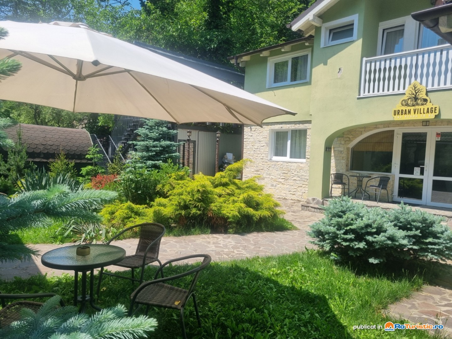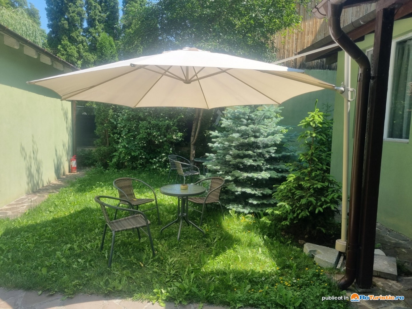 Proprietatea dispune de curte interioară, terasă amenajată, mobilier de exterior, zonă de picnic și spații verzi, oferind un loc de relaxare chiar în centrul orașului, în care nu vei crede că se poate.