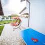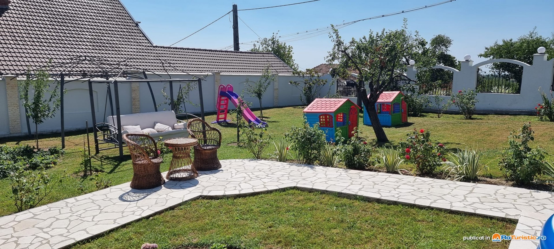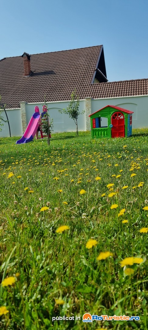 Pentru cei mici, există un loc de joacă special amenajat, iar curtea mare vă oferă spațiu generos pentru plimbări relaxante sau activități în aer liber.