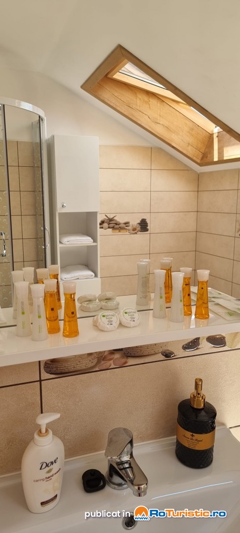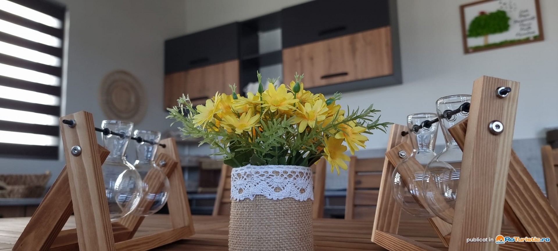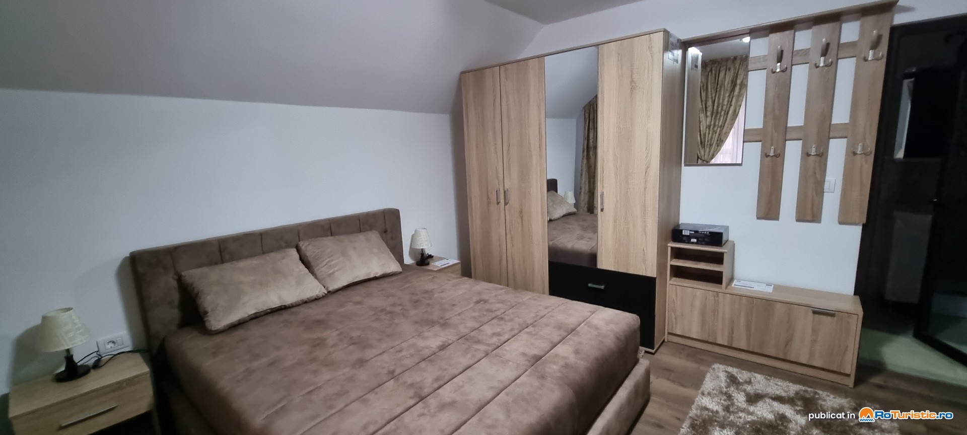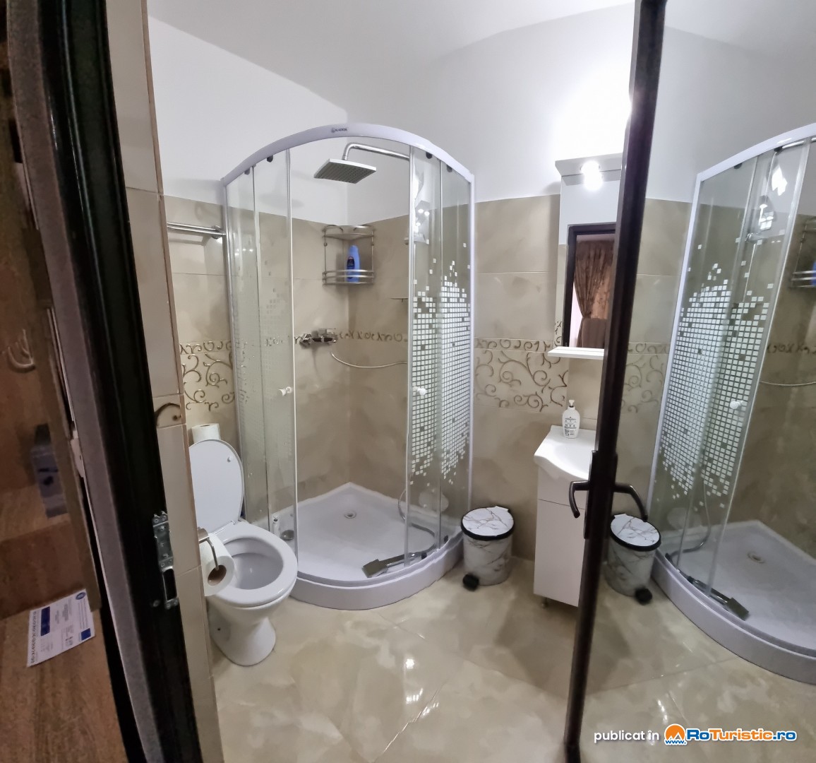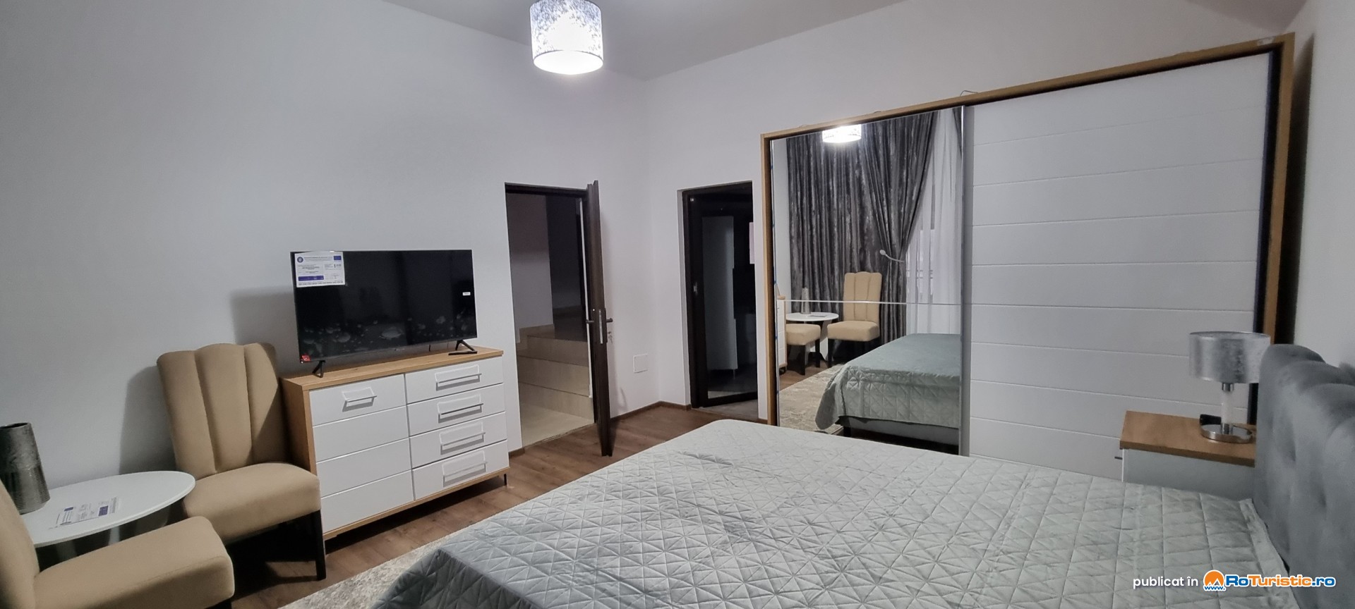 Pensiunea dispune de 6 dormitoare cu baie proprie, iar la parter, veți găsi băi suplimentare, o sală de mese spațioasă, locul ideal pentru a vă bucura de preparatele delicioase pregătite în bucătăria complet utilată.