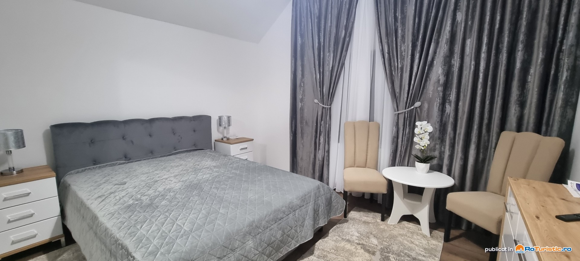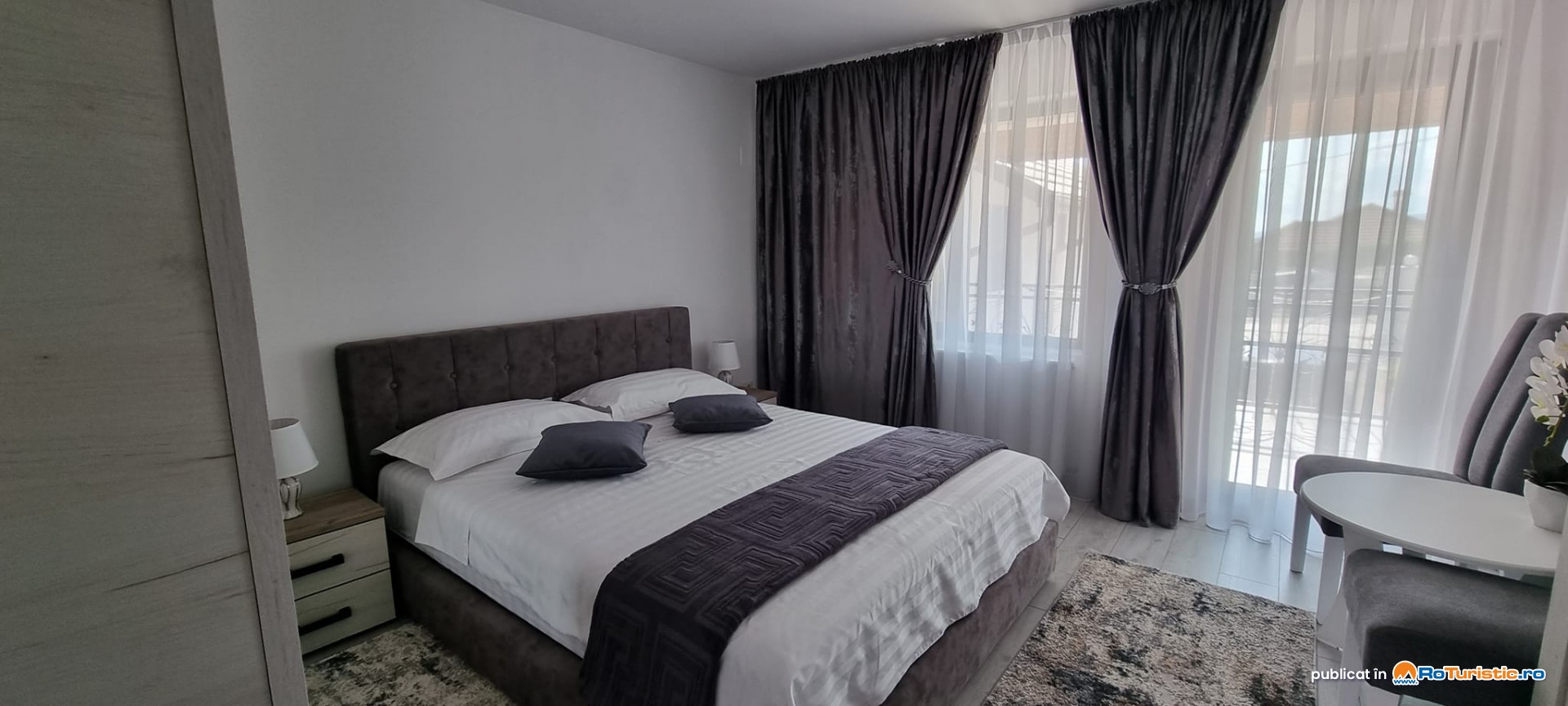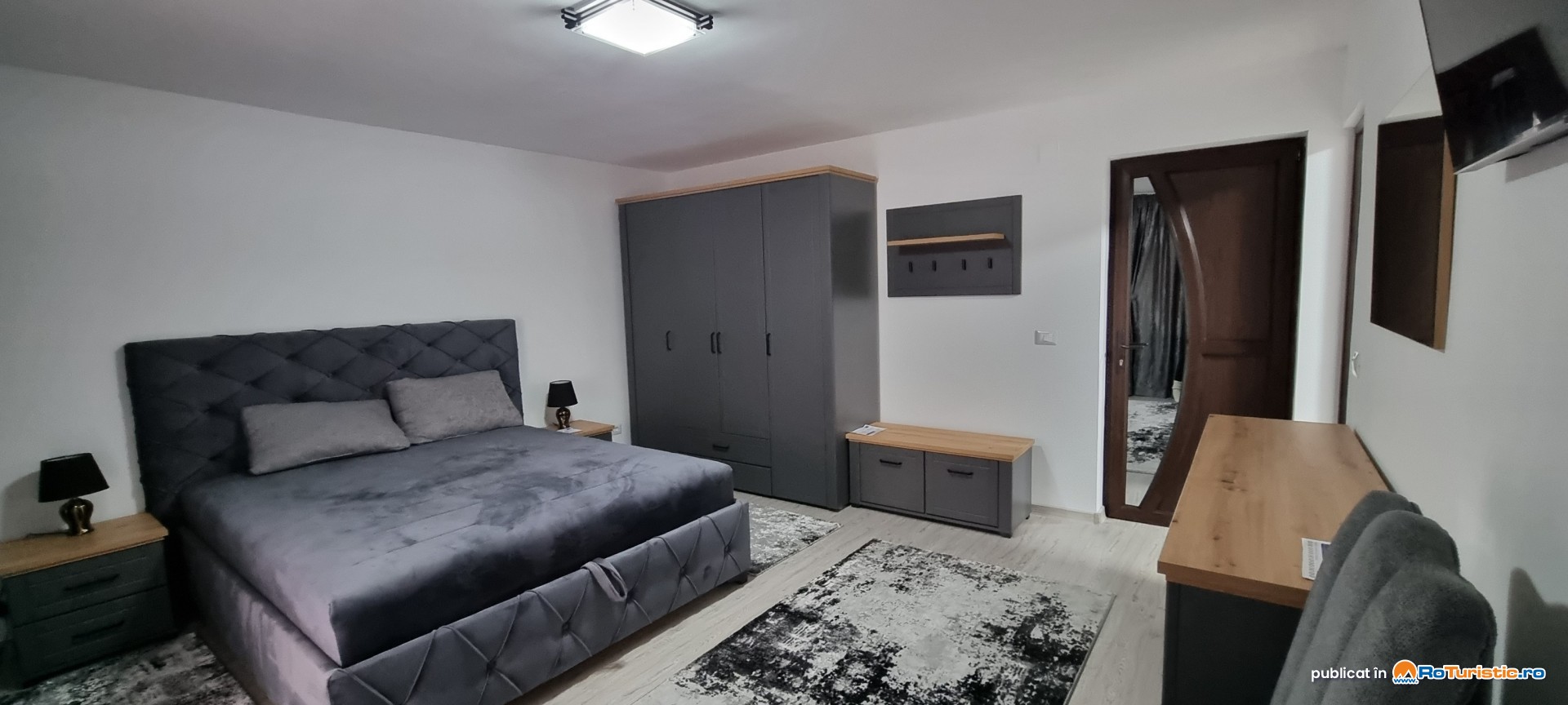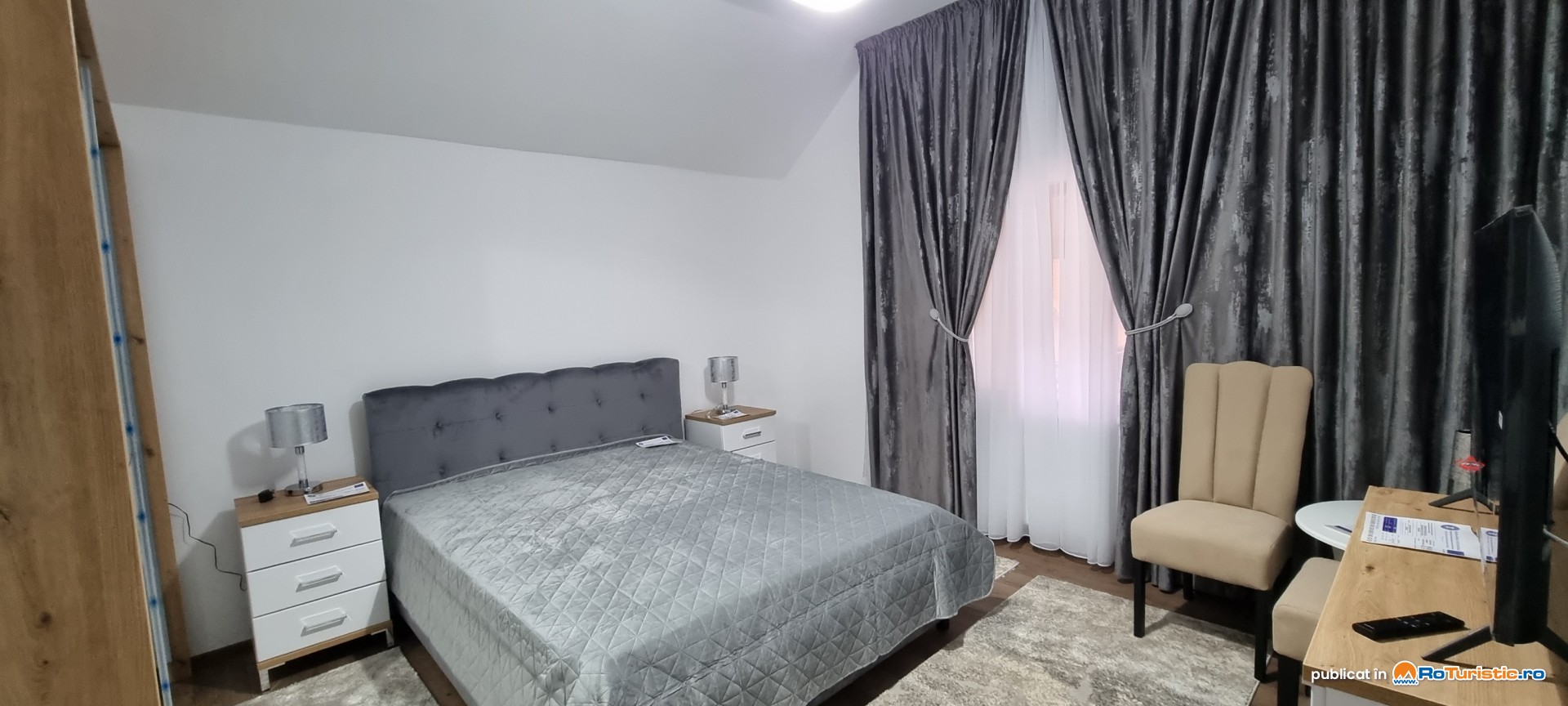 Pensiunea dispune de 6 dormitoare cu baie proprie, iar la parter, veți găsi băi suplimentare, o sală de mese spațioasă, locul ideal pentru a vă bucura de preparatele delicioase pregătite în bucătăria complet utilată.