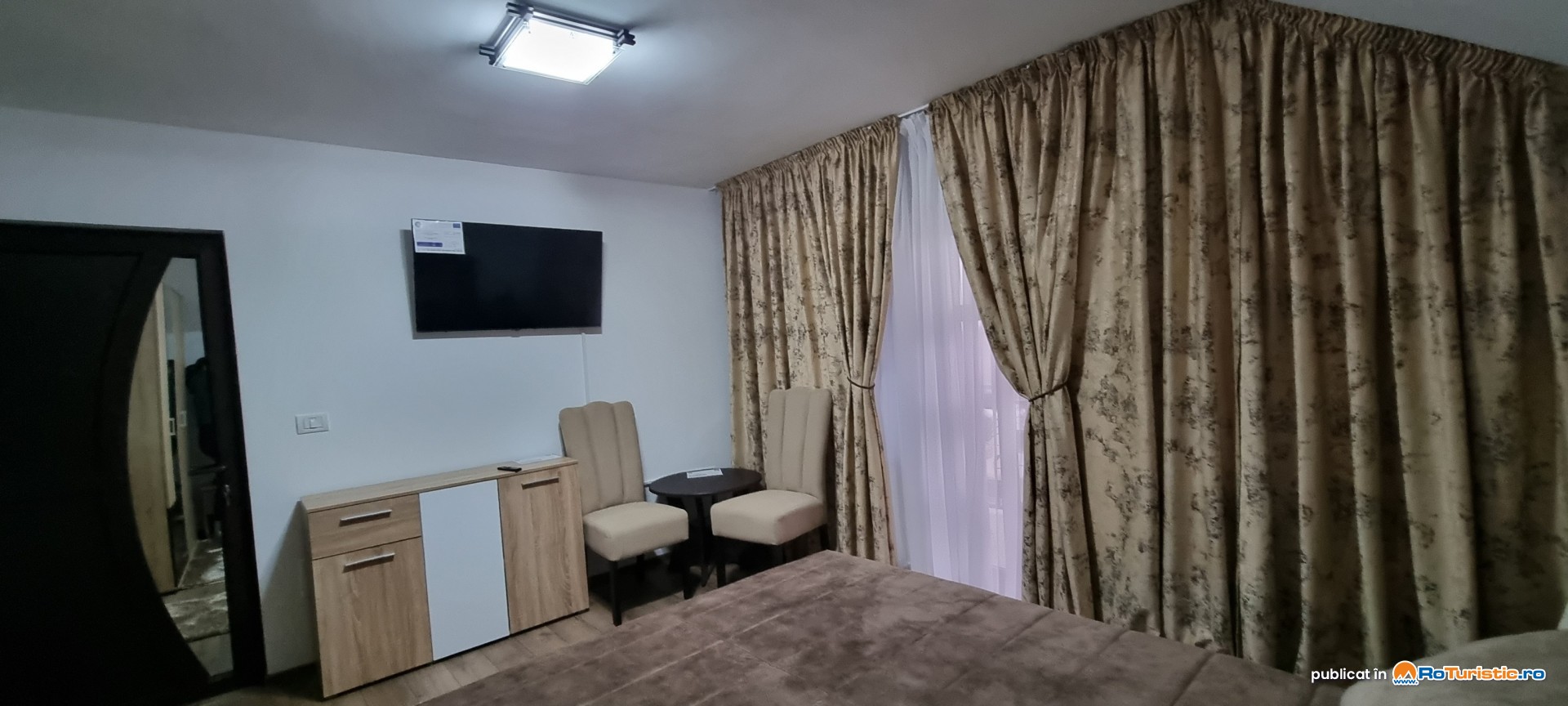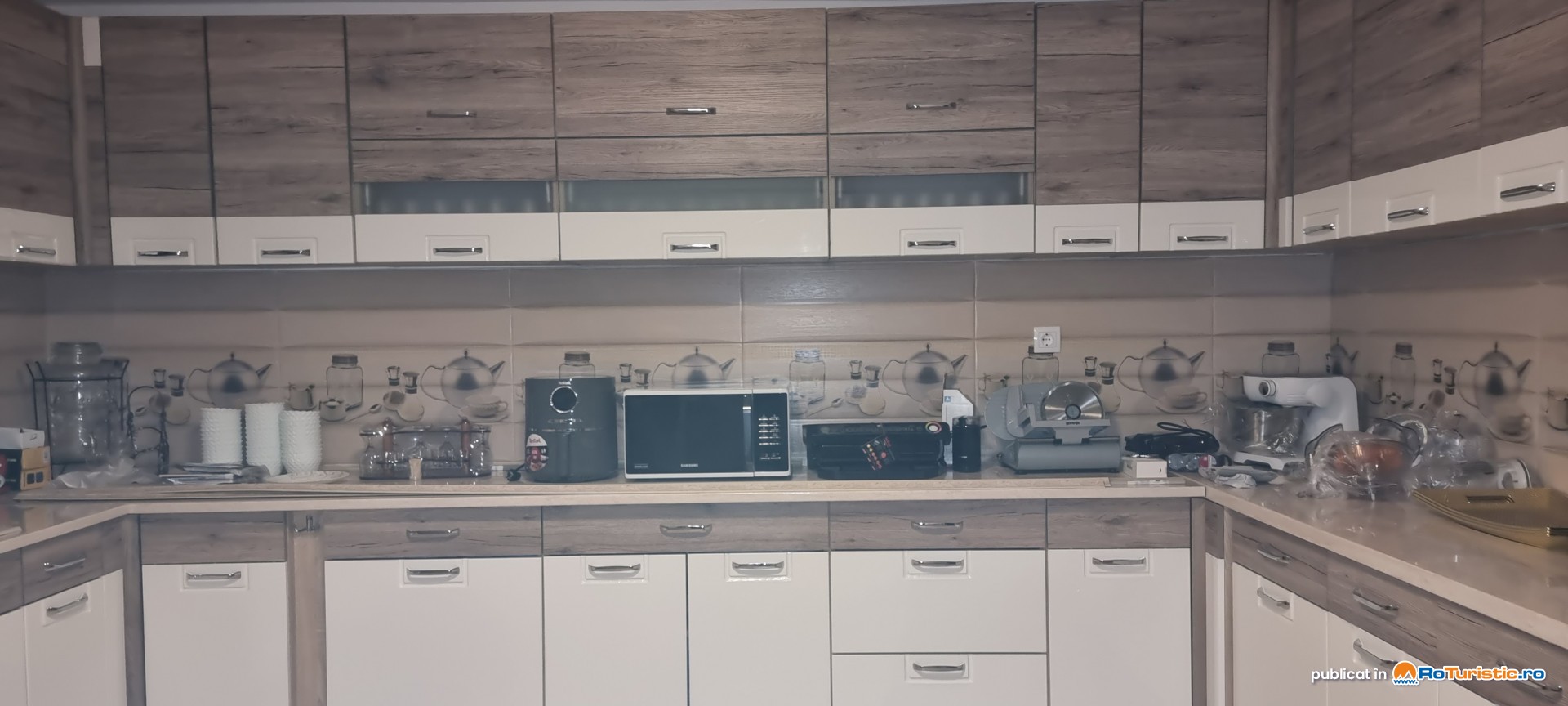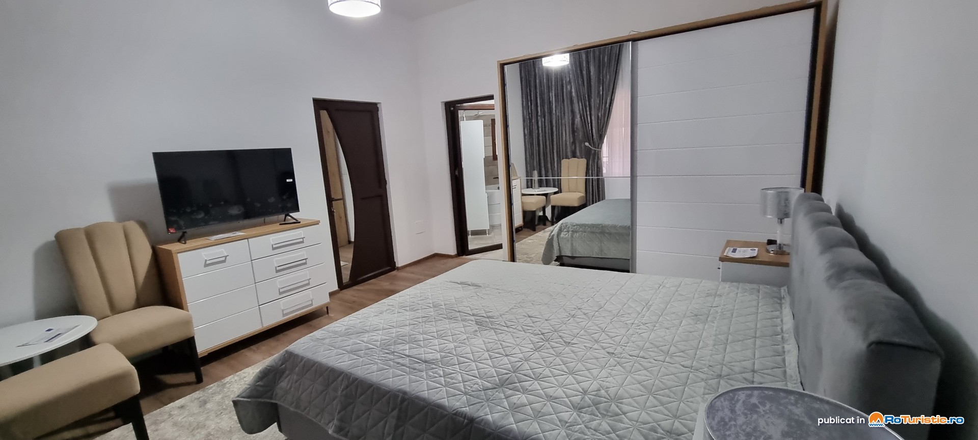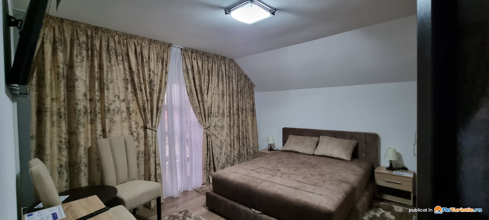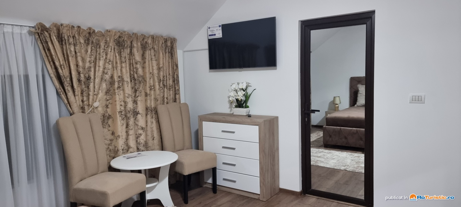 Pensiunea dispune de 6 dormitoare cu baie proprie, iar la parter, veți găsi băi suplimentare, o sală de mese spațioasă, locul ideal pentru a vă bucura de preparatele delicioase pregătite în bucătăria complet utilată.