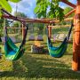 Oferim și facilități de divertisment precum hamace, leagăne, tobogane, trambuline, pergolă exterioară cu bănci și teren de badminton pentru a vă menține energia și voia bună la cote maxime. Pentru cei care doresc să se relaxeze în natură, curtea noastră generoasă de 4000 mp este locul ideal pentru a vă bucura de aerul curat și frumusețea peisajului.