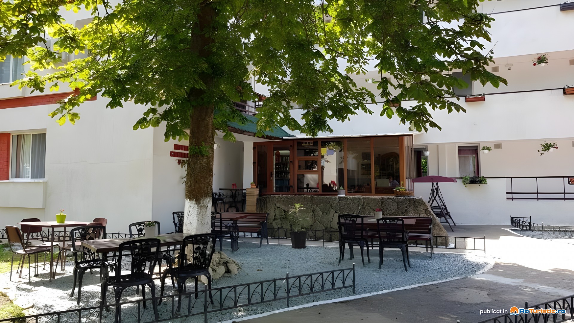Terasa hotelului este inconjurata de vegetatie, fiind o oaza de relaxare si aer curat. Neavand restaurant propriu la cerere masa poate fi servita la 2 restaurante din apropiere cu care avem contract de colaborare.