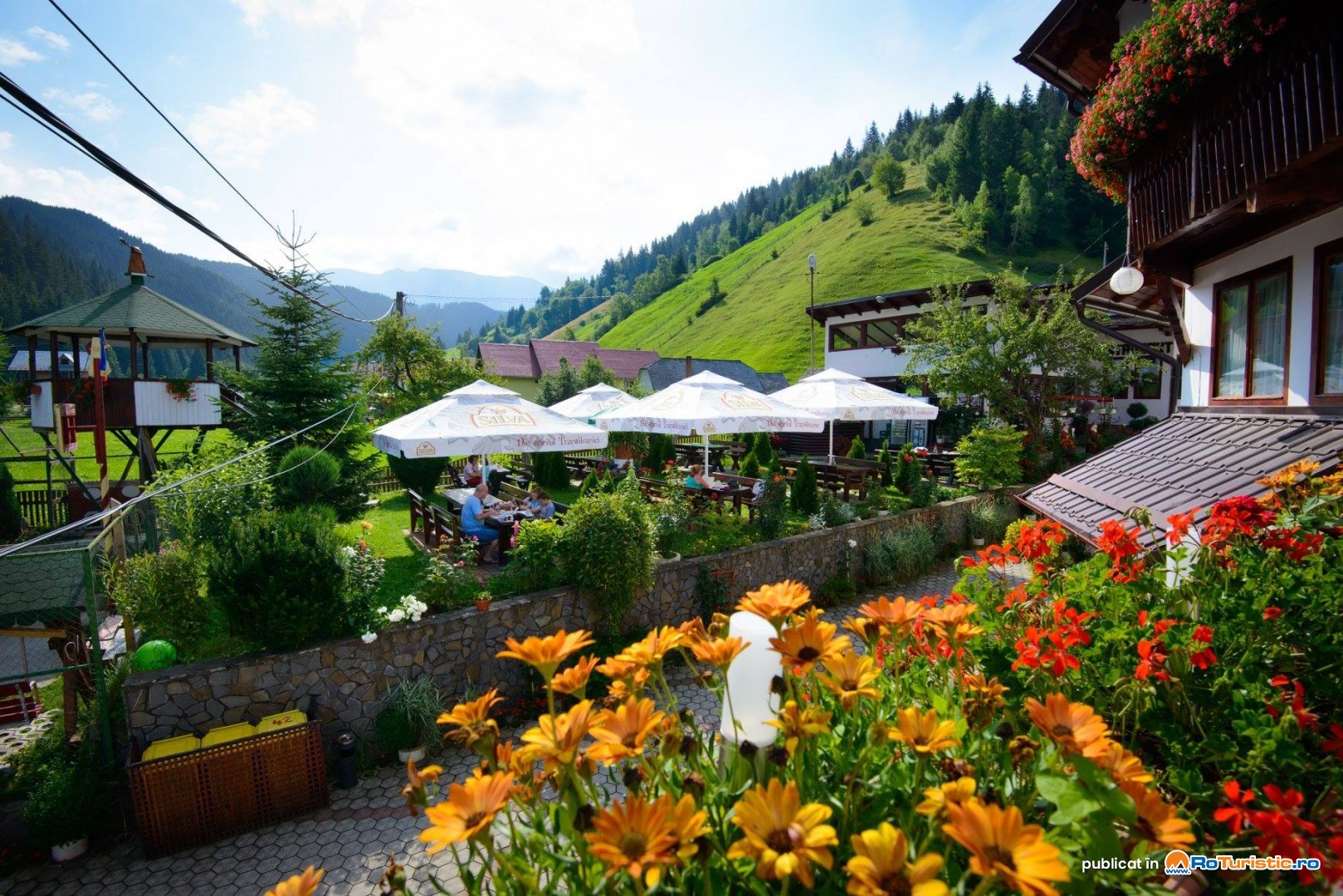 Restaurantul vă așteaptă cu bucate alese ce pot fi savurate și pe terasă. Pentru copii avem la dispoziție mult spațiu verde, cu loc de joacă amenajat + tobogan gonflabil ce transforma pensiunea noastră întrun loc „child friendly” și „pet friendly”.