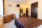 Pensiunea este dotata cu 5 apartamente (living, dormitor, baie, bucatarie) si 55 de camere duble dintre care 12 cu doua paturi si 43 cu pat matrimonial.