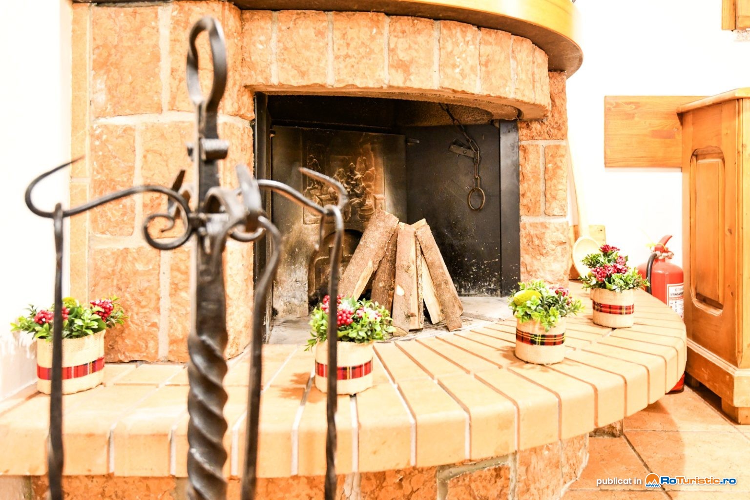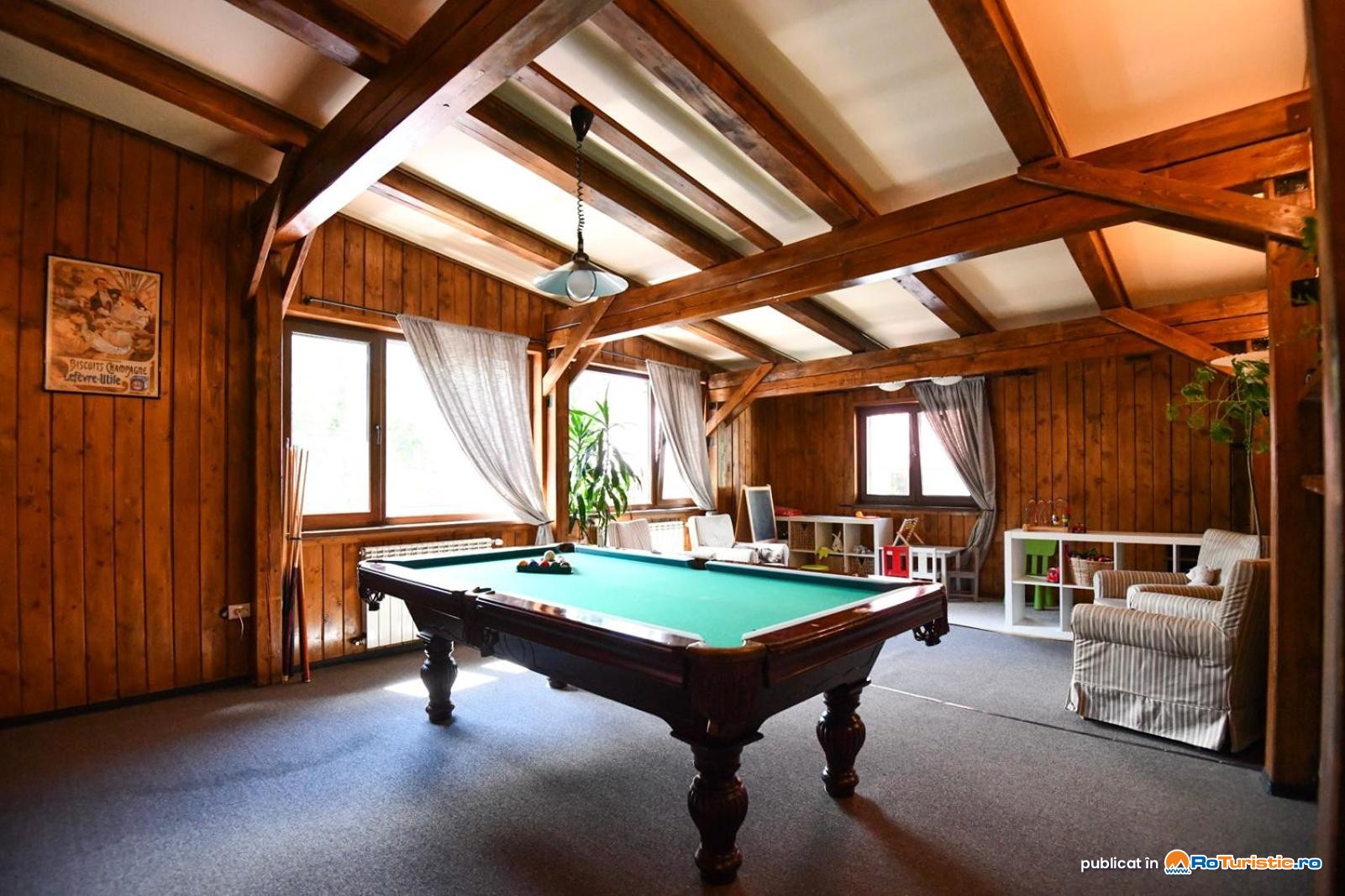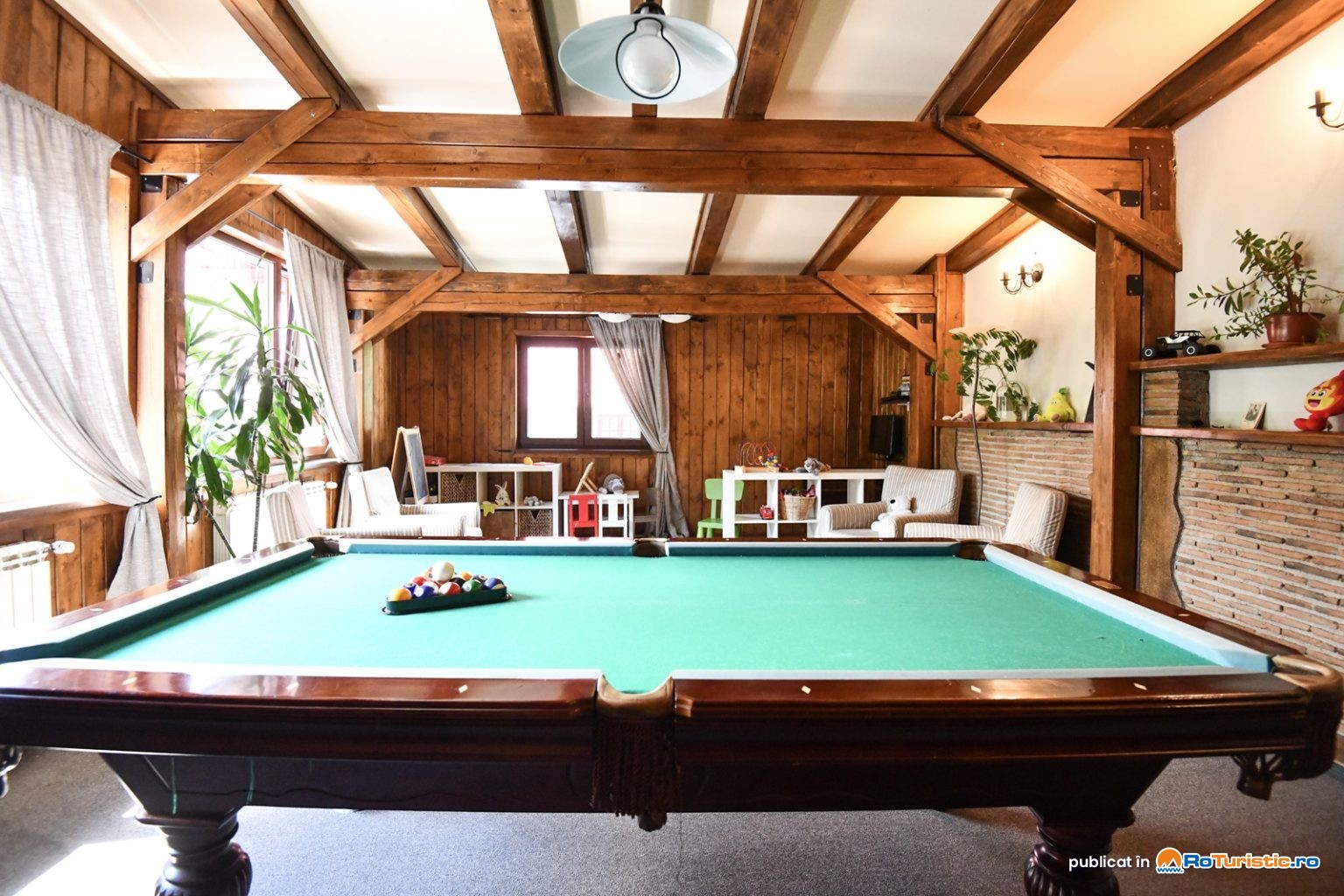 La interior, pensiunea dispune de sală de mese, bucătărie complet utilată, sală de conferințe, loc de joacă interior, living cu TV, șemineu pe lemne, masă de biliard și alte jocuri de societate.
