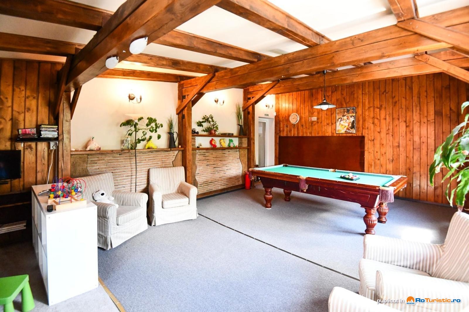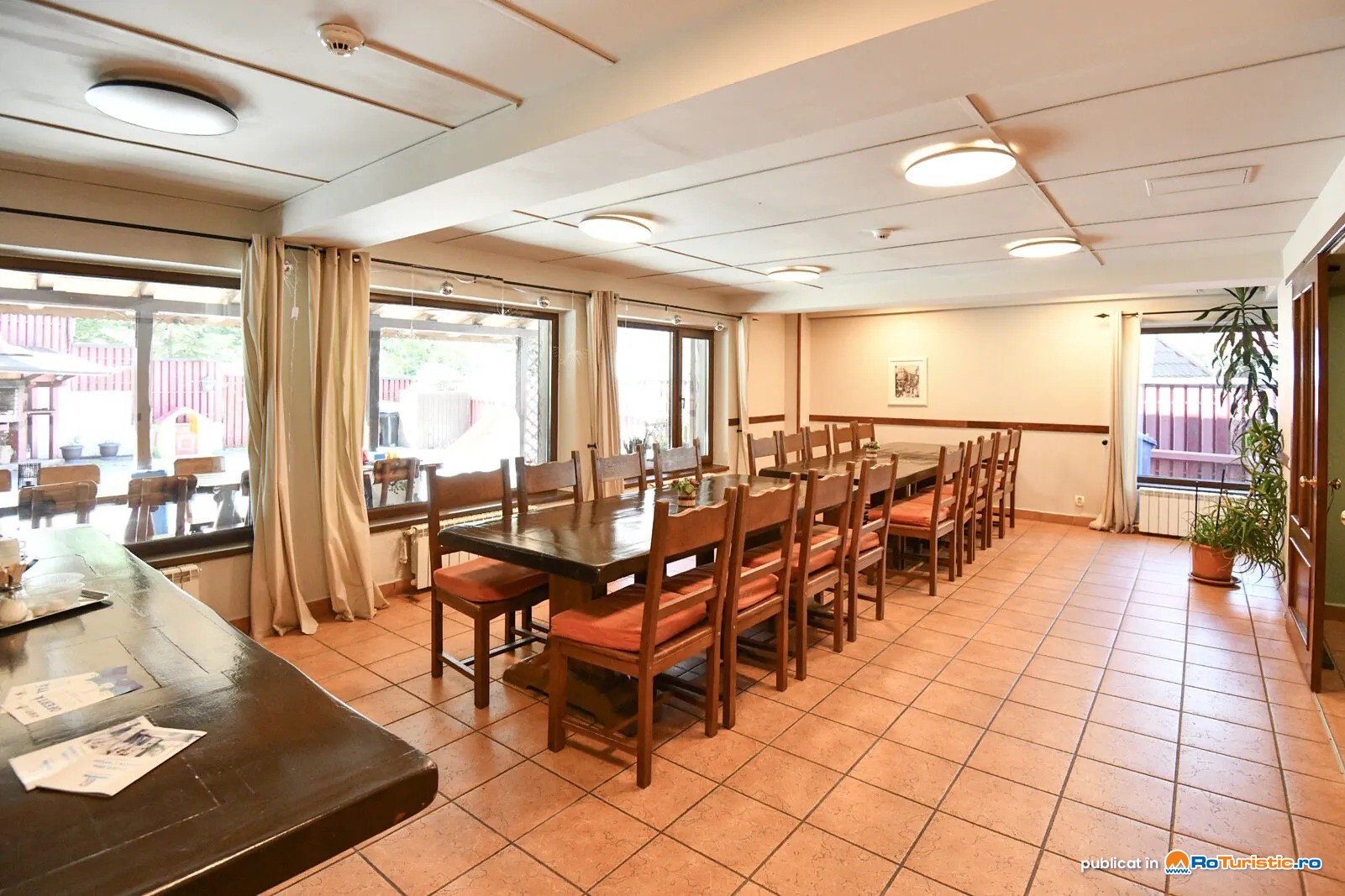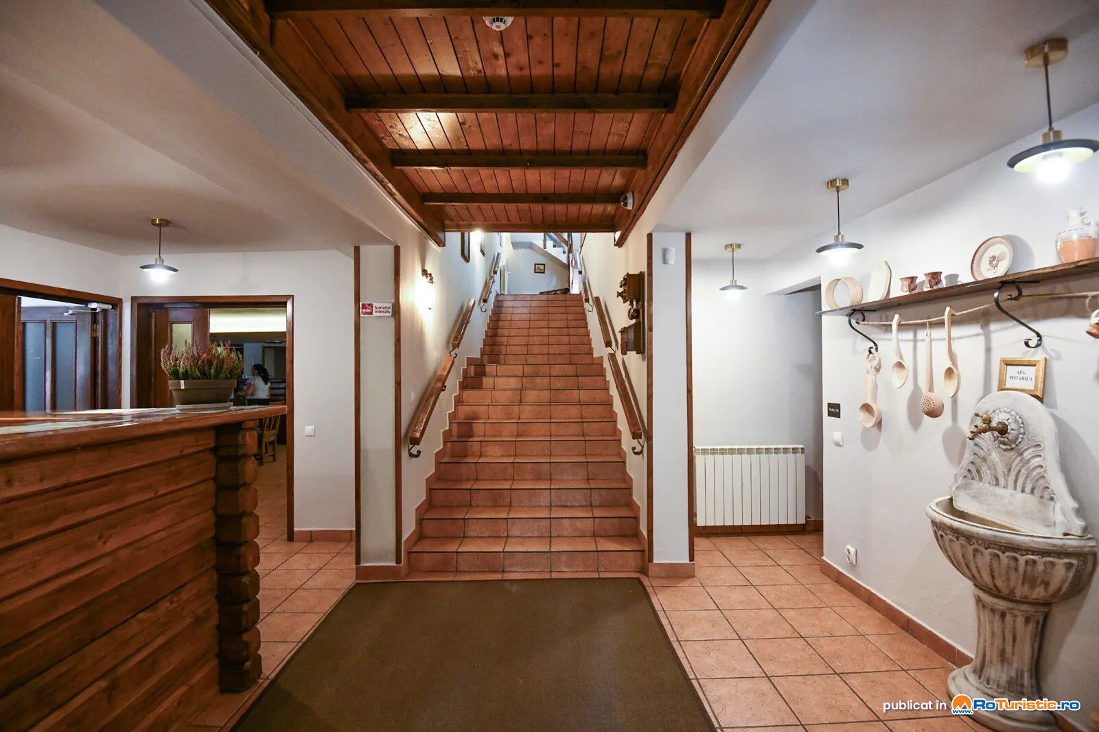 La interior, pensiunea dispune de sală de mese, bucătărie complet utilată, sală de conferințe, loc de joacă interior, living cu TV, șemineu pe lemne, masă de biliard și alte jocuri de societate.