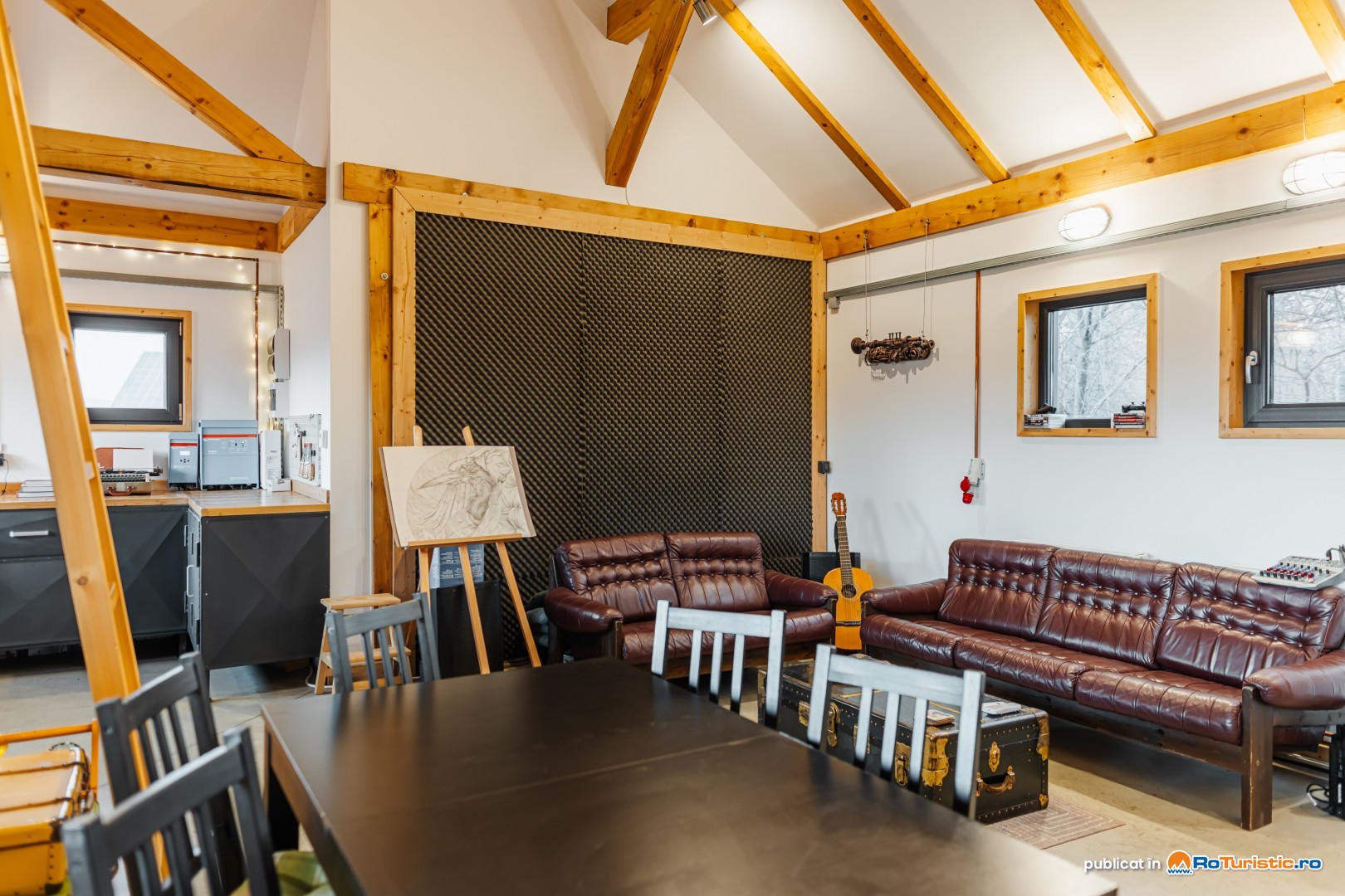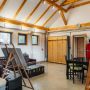 Clădirea principală este gândită special pentru a inspira creativitate și a oferi oportunități de relaxare și distracție. Printre facilități se numără o bibliotecă, un videoproiector, un PlayStation, diverse jocuri și un banc de lucru, ideale pentru ateliere, sesiuni de brainstorming sau momente de răgaz. Casa include și o baie cu duș, precum și un studio cu chicinetă.