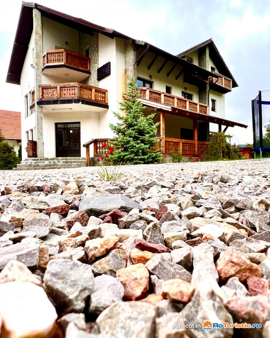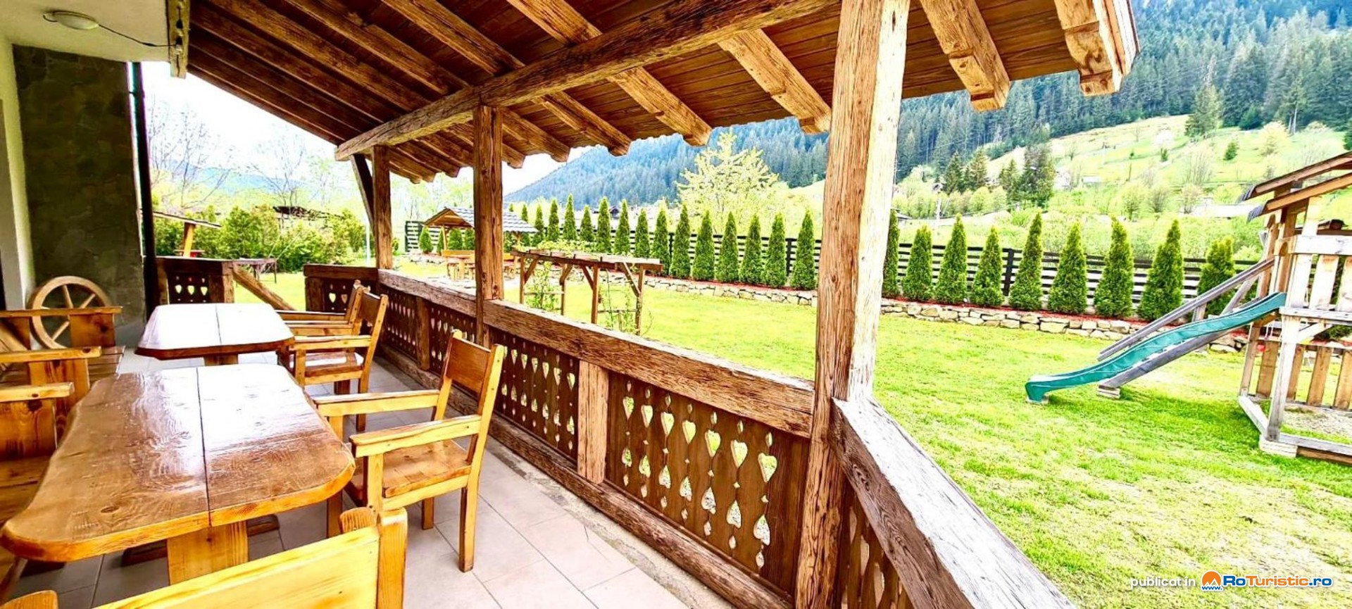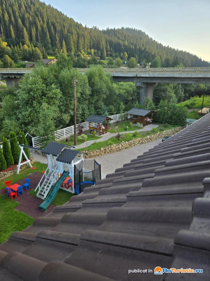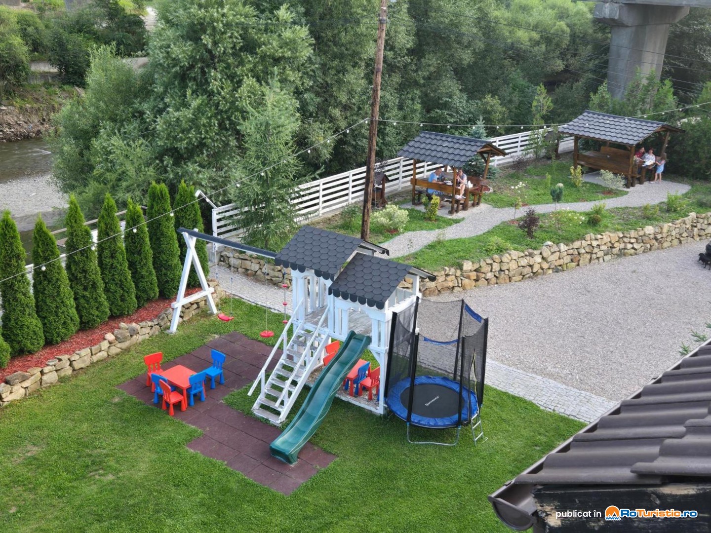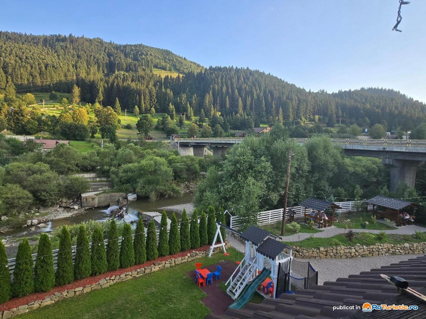 Pensiunea pune la dispoziție o grădină cu porți de siguranță pentru copii, parcare proprie, loc de joacă, șemineu în aer liber, spații verzi, facilități pentru grătar, terasă și vedere spre râu și munte.