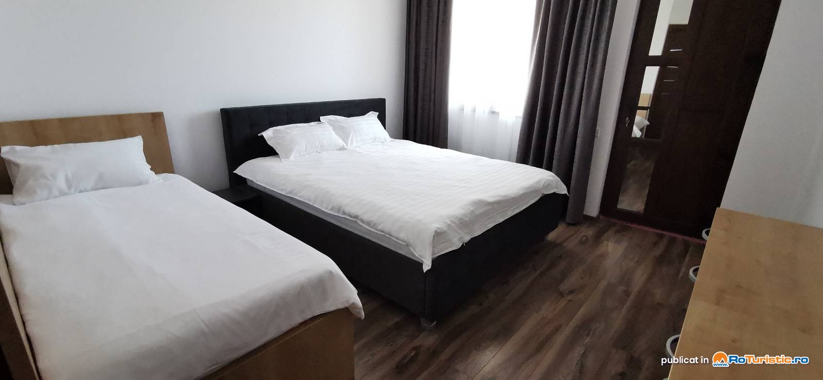 Punem la dispoziția oaspeților camere duble și triple, amenajate modern, dotate cu:
