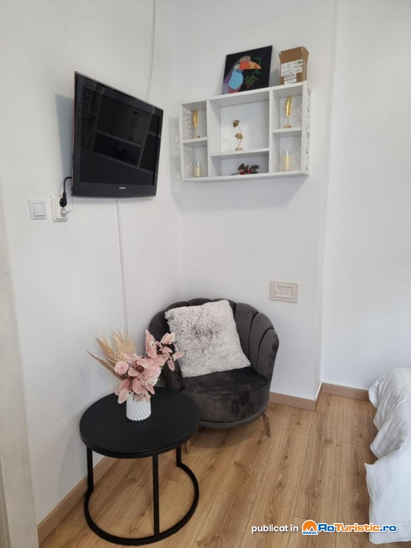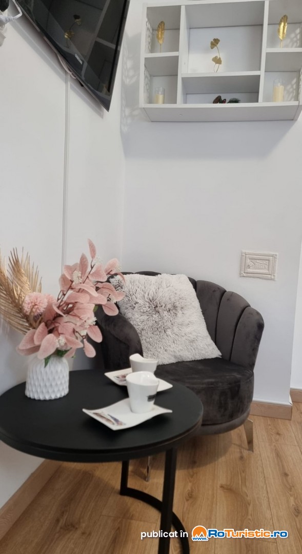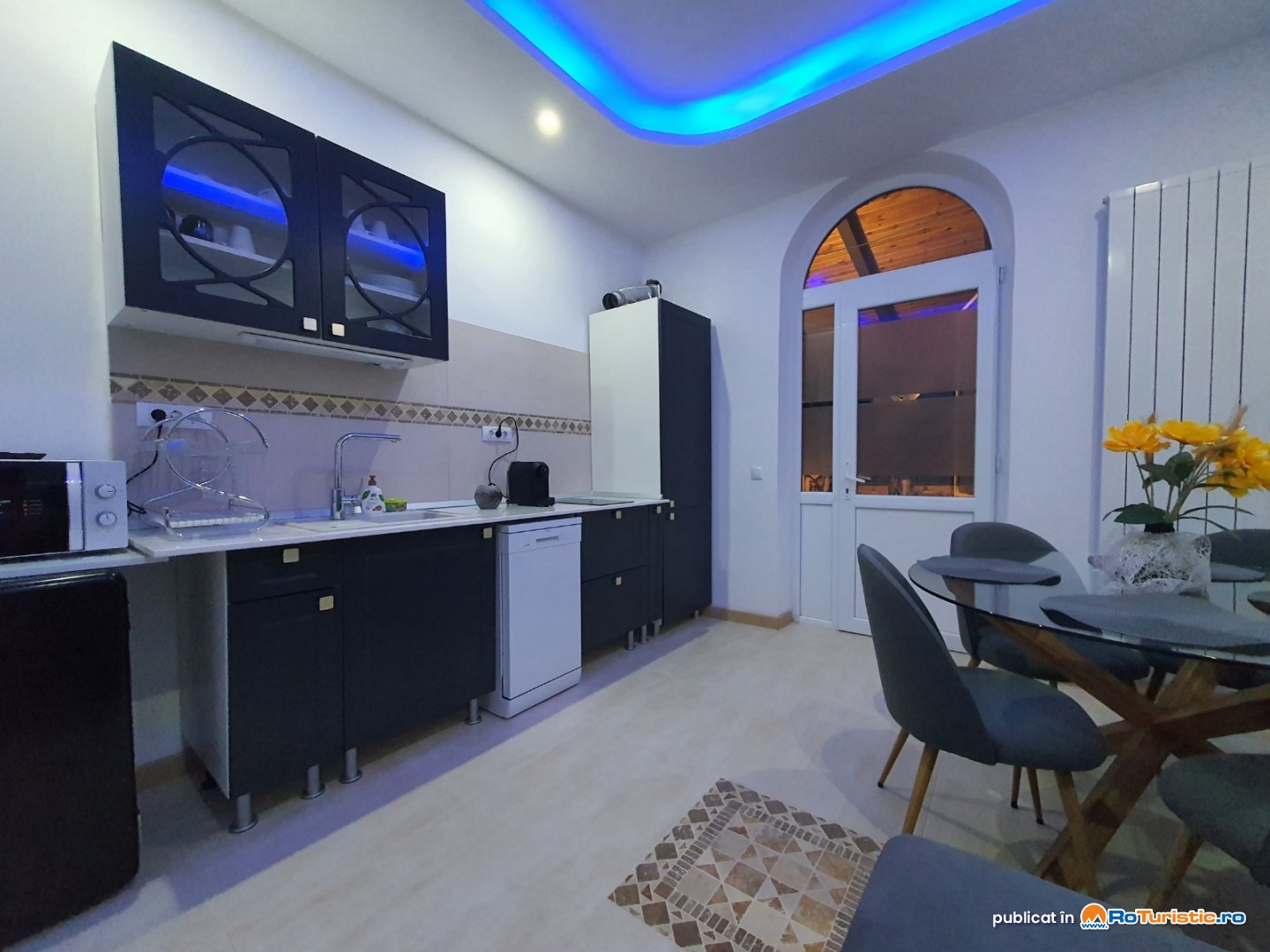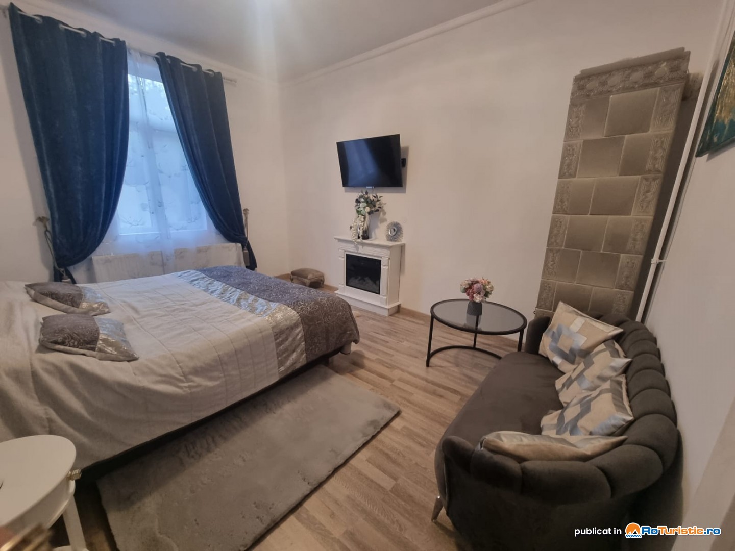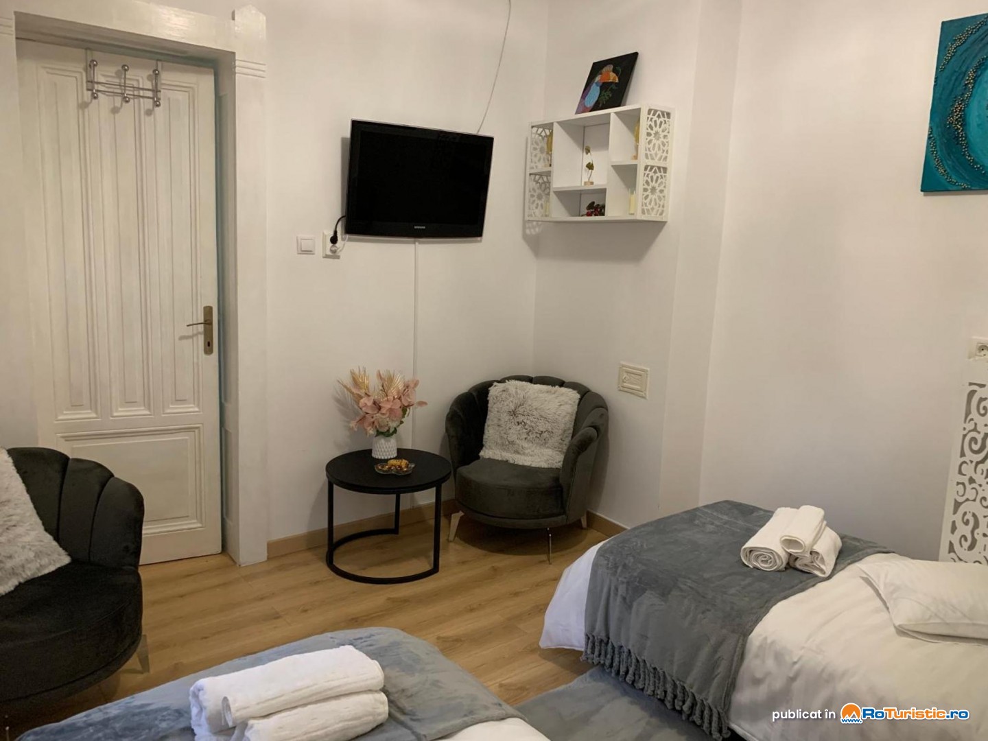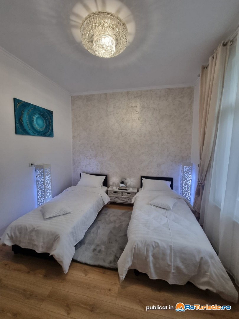 ✔️ Apartamentul nr. 1 – Luna Residence este situat la etajul 1 al unei vile istorice și are două dormitoare, fiecare dotat cu TV și un mic colț de relaxare pentru cafea. Apartamentul dispune de mini-chicinetă, zonă de luat masa și baie cu duș walk-in, uscător de păr și articole de toaletă. Capacitatea maximă este de 4–5 persoane.
