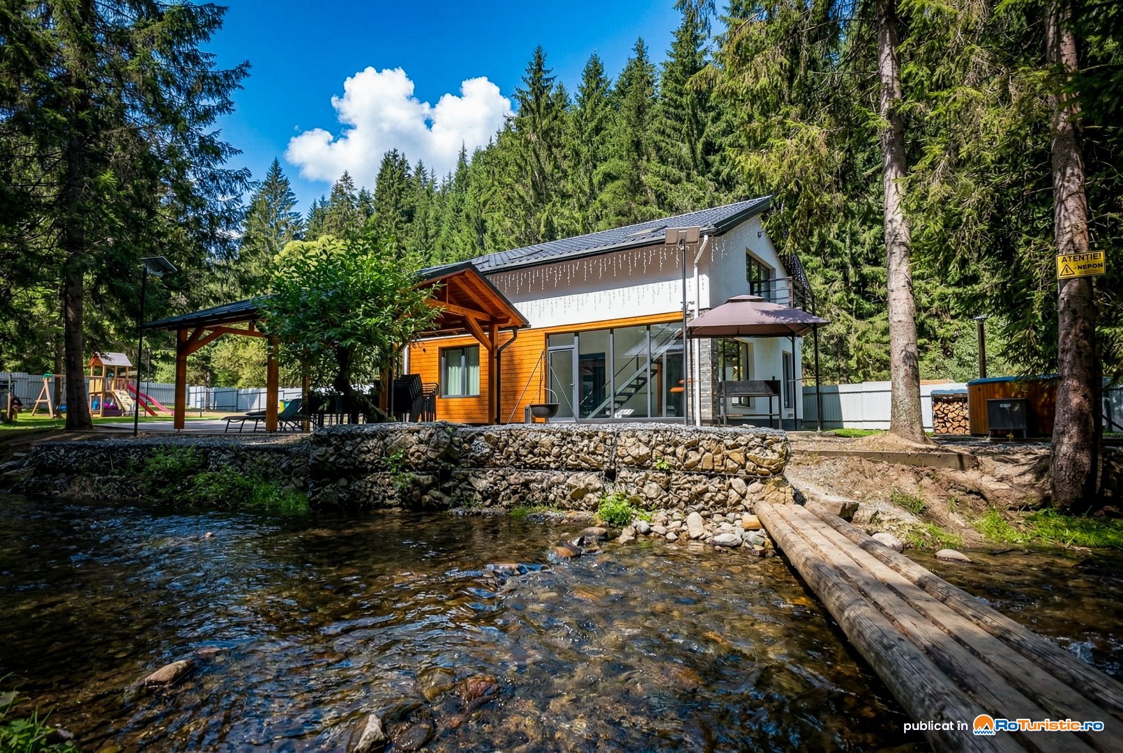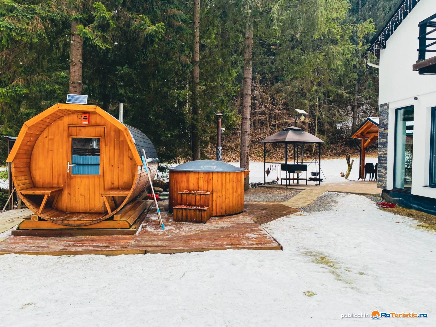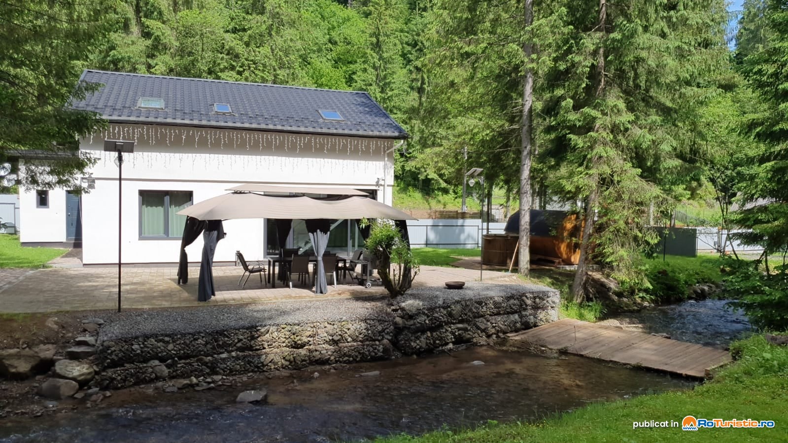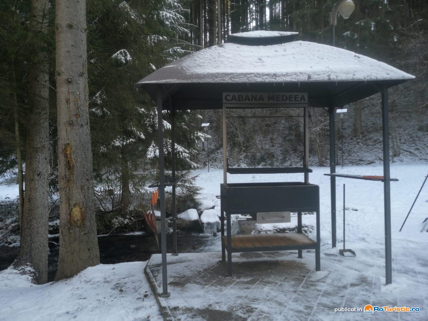La exterior, Casa Medeea dispune de curte cu parcare privată, facilități pentru grătar și ceaun, loc de joacă pentru copii, saună din lemn, ciubăr pentru 8 persoane și terasă exterioară pe malul râului.