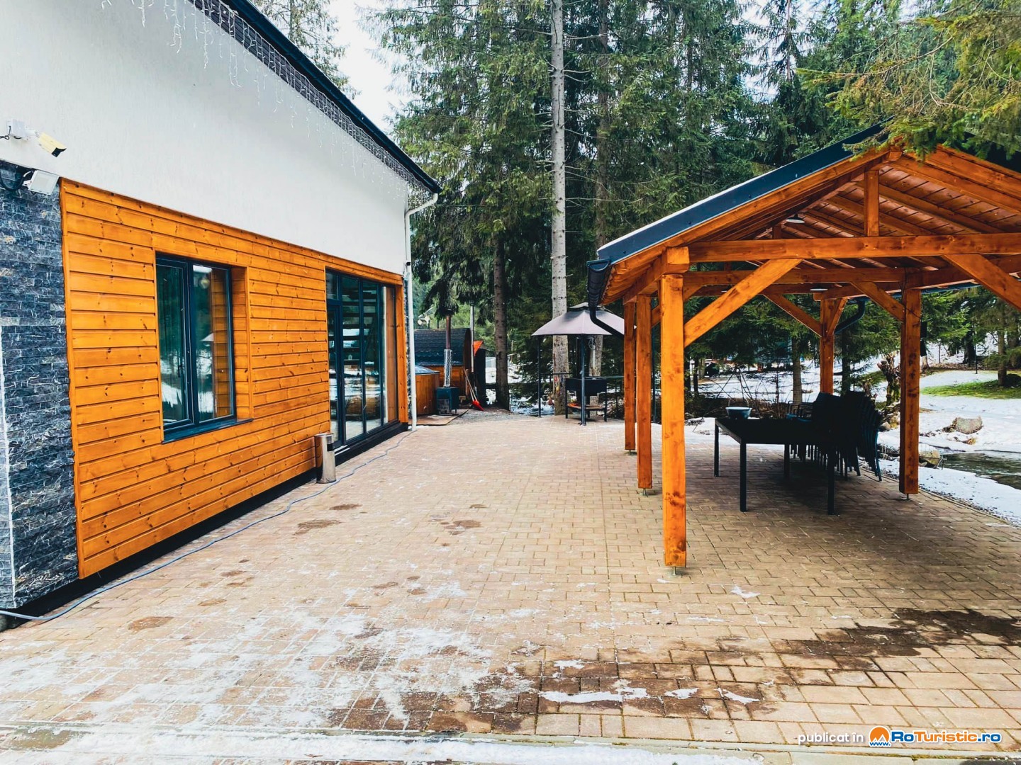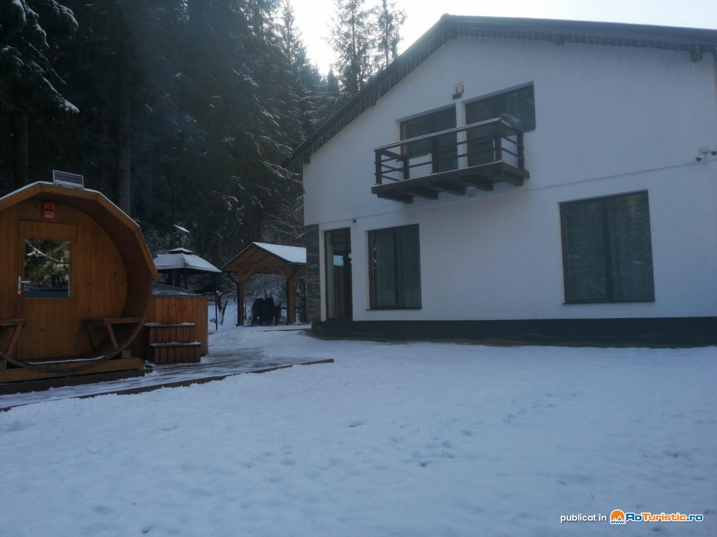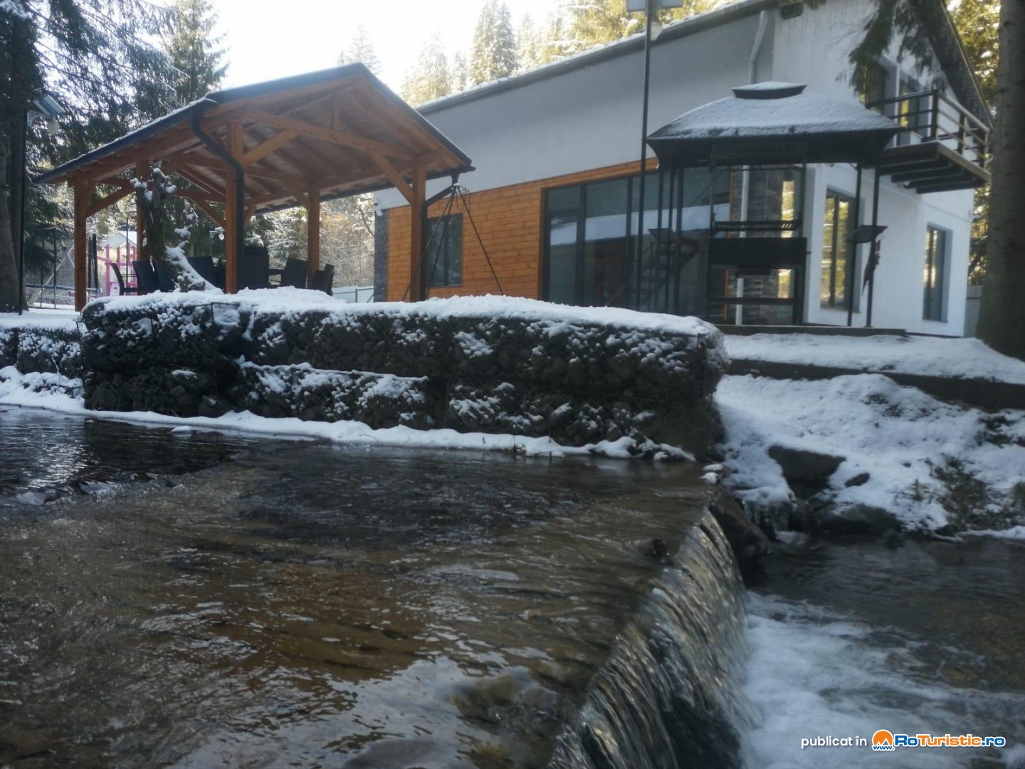 La exterior, Casa Medeea dispune de curte cu parcare privată, facilități pentru grătar și ceaun, loc de joacă pentru copii, saună din lemn, ciubăr pentru 8 persoane și terasă exterioară pe malul râului.