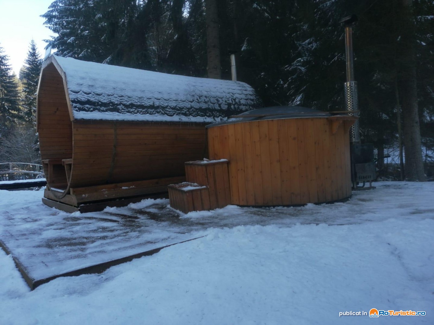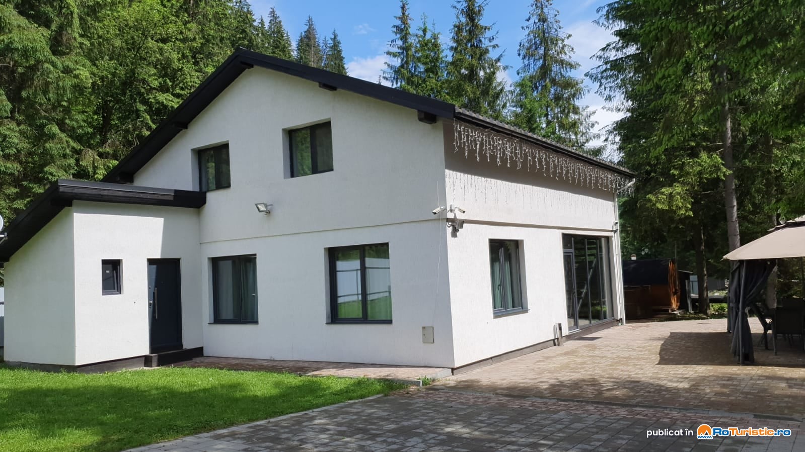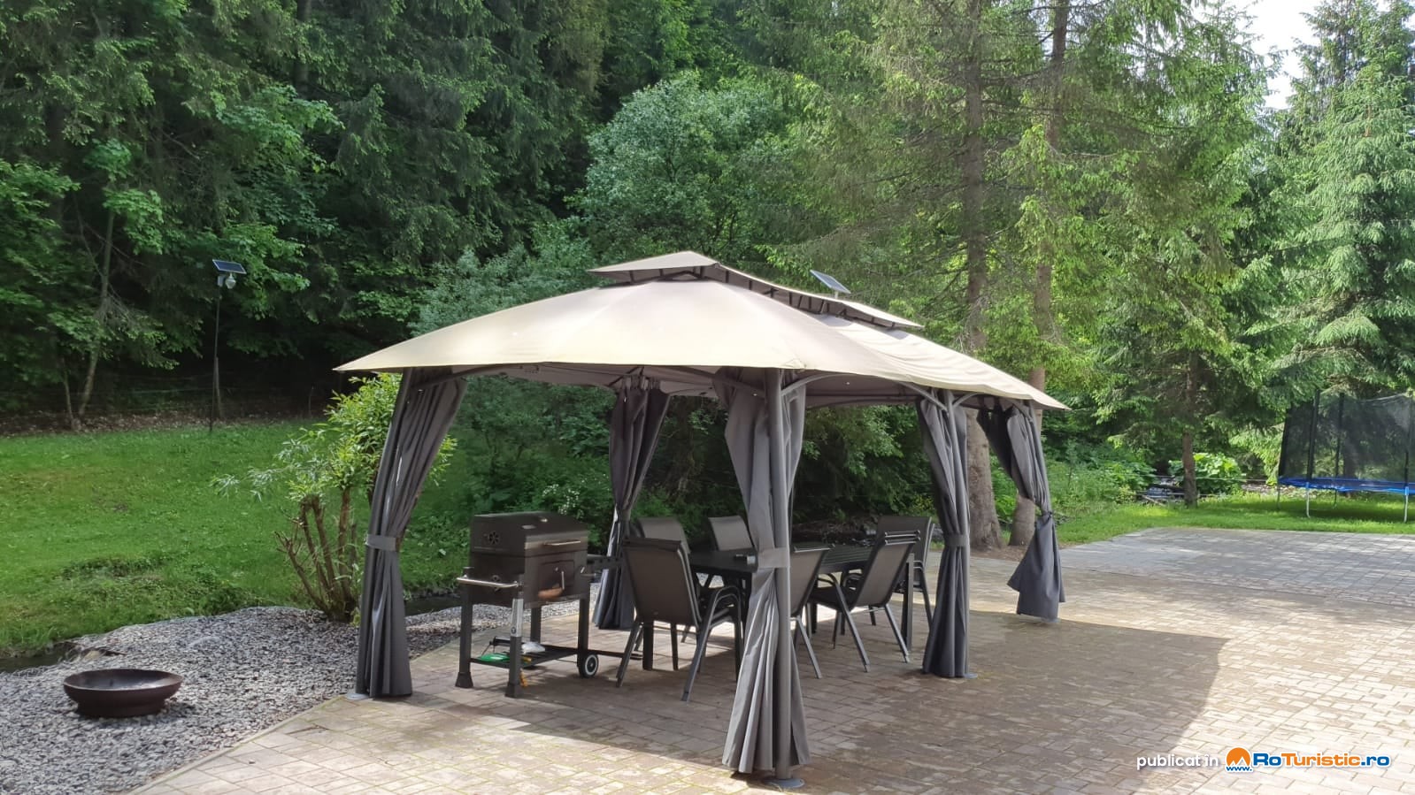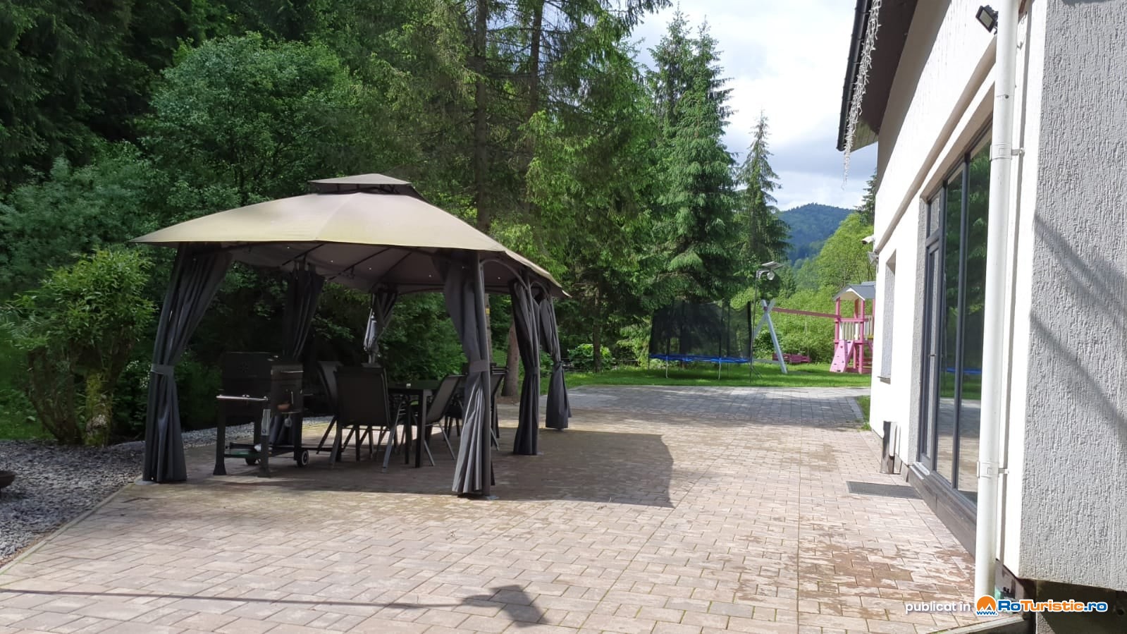 La exterior, Casa Medeea dispune de curte cu parcare privată, facilități pentru grătar și ceaun, loc de joacă pentru copii, saună din lemn, ciubăr pentru 8 persoane și terasă exterioară pe malul râului.