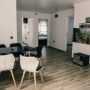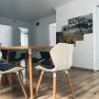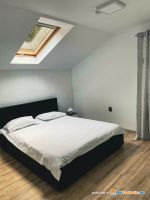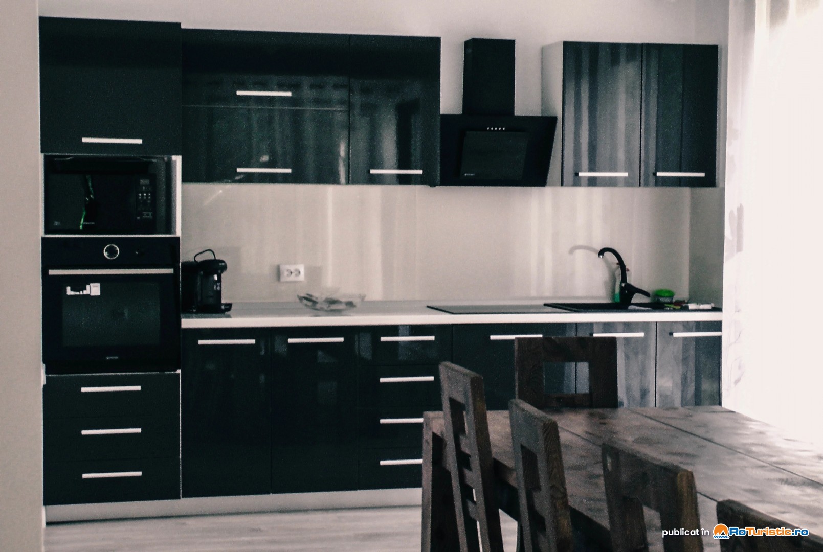 La parter, casa dispune de 2 dormitoare cu baie comună, un living spațios cu TV, bucătărie complet utilată și masă pentru 12 persoane. La etaj se află 4 dormitoare cu baie proprie.