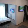 Unele camere dispun de balcon cu vedere la oraș sau la munte, chicinetă bine utilată, zonă de relaxare, loc pentru servirea mesei, două televizoare și canapea extensibilă.